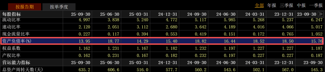 从财务状况来看,截至三季度末,公司资产负债率为13.95%,较上季度和去年同期分别下降4.82和4.87个百分点,财务结构持续优化,抗风险能力增强。
