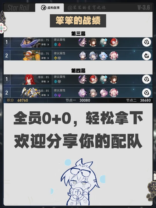 🐱大家好,我是笨笨的铲屎官 新的一期虚构叙事上线了 这一期有dot的环境 卡黑、黄泉+dot也是站起来了 其他的包括白厄、大黑塔、遐蝶都可以一战 整体而言还是比较轻松的 你那下满星了吗 看看你的配队