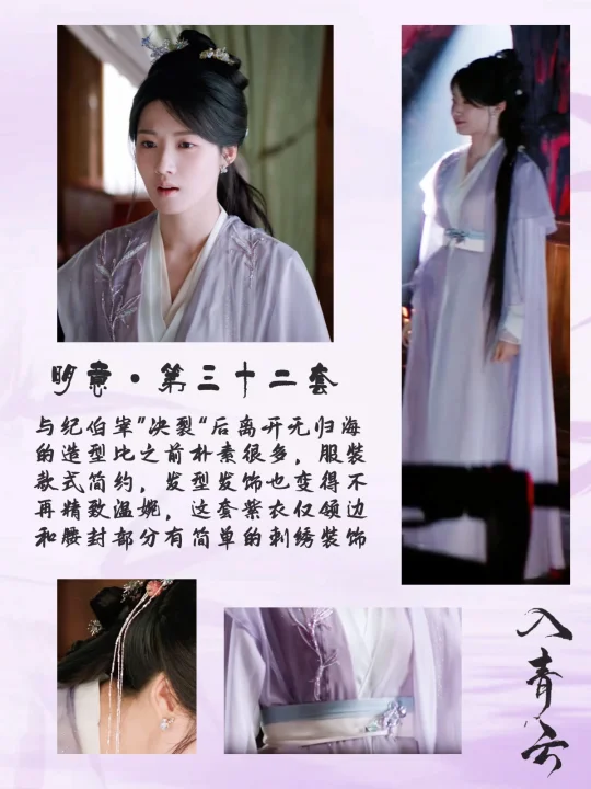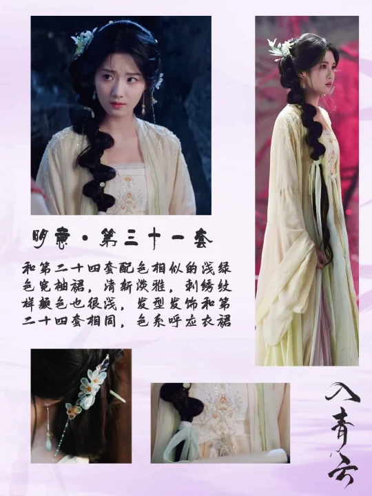 发型真的能决定造型的整体感觉,离开无归海之后的明意没有之前那么“娇憨妩媚”了,打扮也不再精致到锁骨都要贴花🌸 我最爱的侧边大麻花辫也无了[皱眉R] 你们喜欢前期的发型还是后期成熟的呢?(其实后期的发型背面很好看,正面看就简单了不少) 💡男女主妆造持续更新中…
