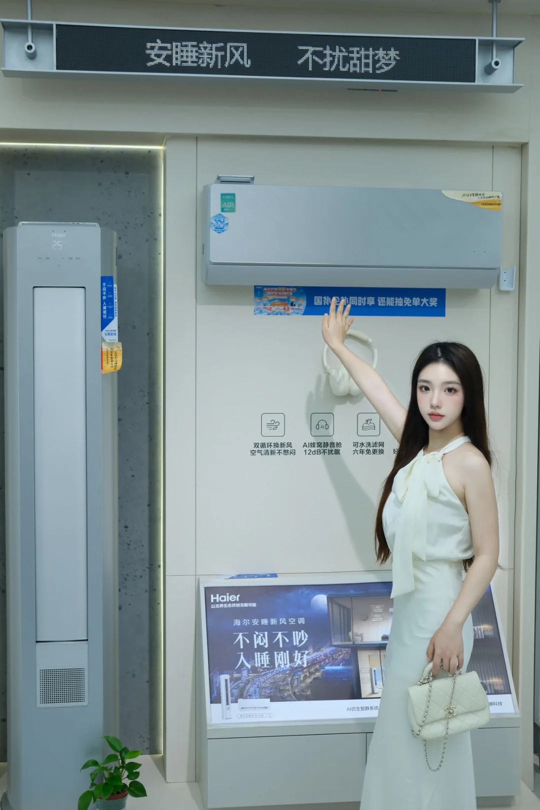 而体验店内还有【海尔安睡新风空调】 12分贝超静音是什么概念? 就是你只听得见自己的呼吸声~ HEPA滤网还能水洗,一年省下1200元 睡眠浅的姐妹真的可以闭眼入!