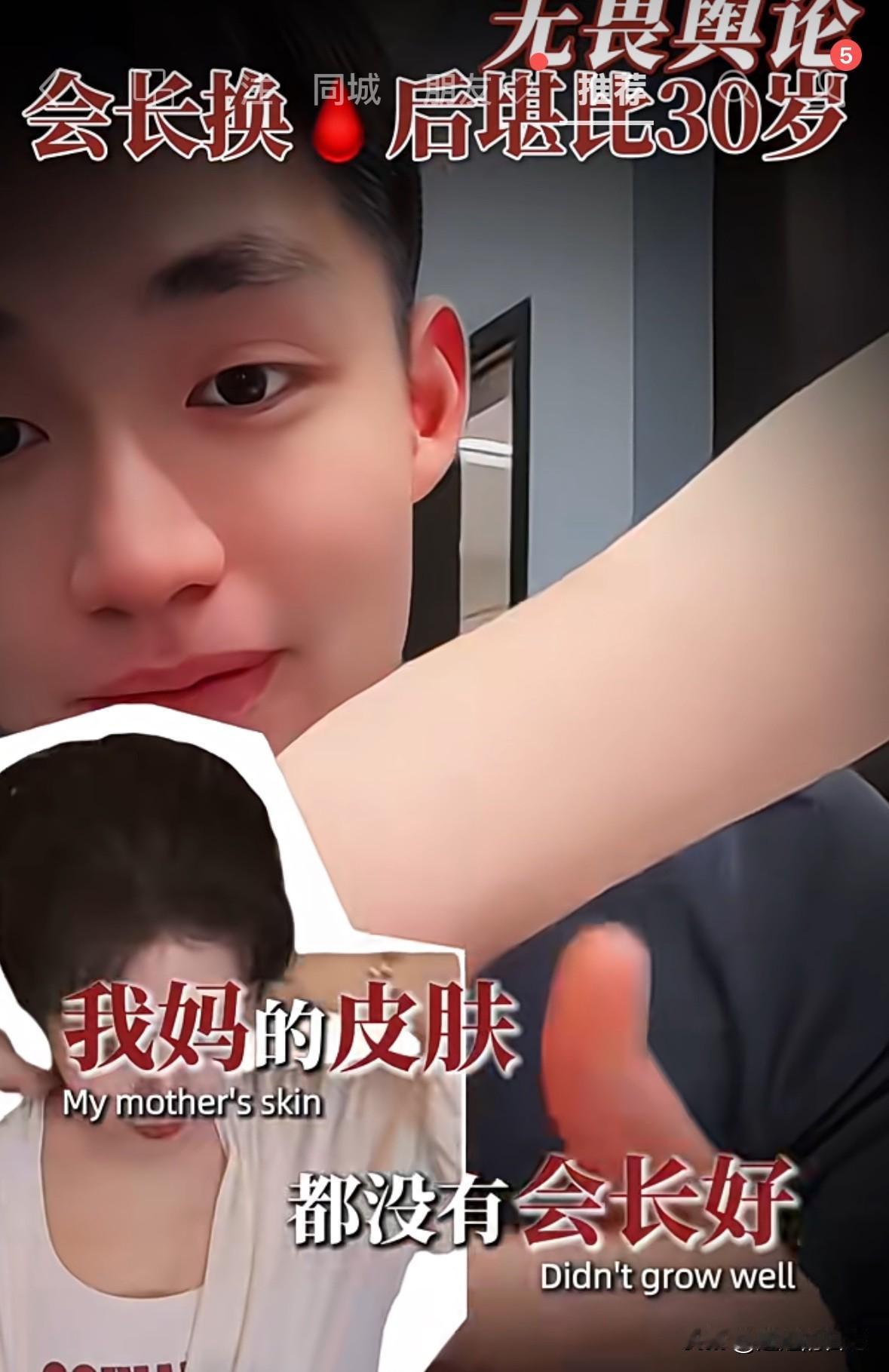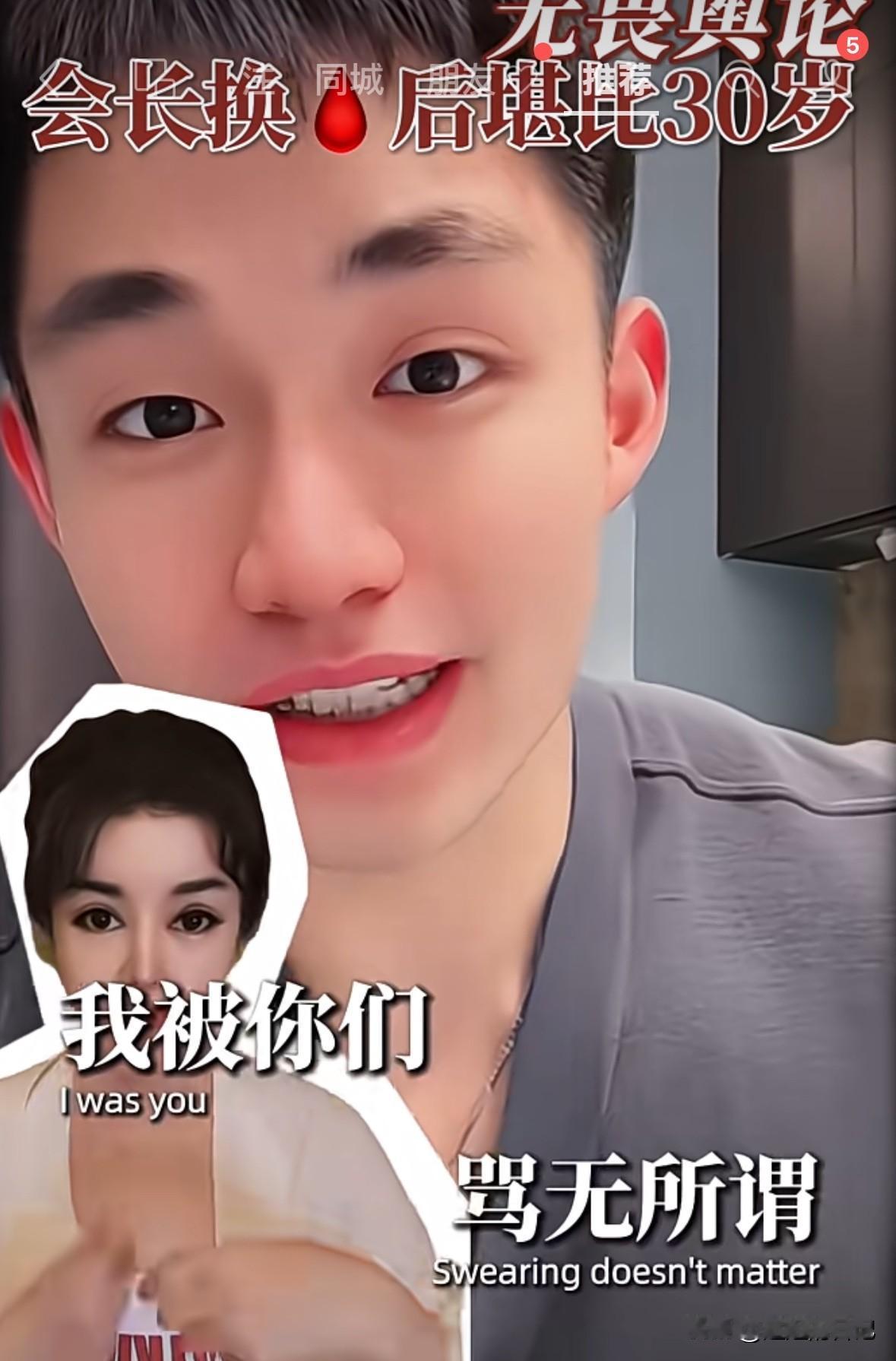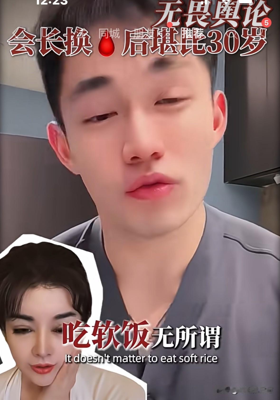 于文红小男友说,“我要让我妈妈来做这个项目,那一定是免费的”。看来就是薅羊毛的呀。 于文红小男友说了“于文红的皮肤状态比自己妈妈都好,他现在想让他妈妈也来换🩸,而且现在他妈妈做也是免费的。你们骂我脸皮厚,吃软饭都没关系,只要梦给家人带来健康,也是我尽孝,为家人创造价值了”。 哎呀妈呀,明晃晃的,一点都不隐藏自己的贪婪。不是富二代么?不是有上市公司么?我就不信了,有上市公司的富二代父母,会相信她的鬼话,来换什么🩸,会让自己儿子毫无尊严吃软饭。 我们都是穷人,一个月两千万我们消费不起,我们一辈子也没见过两千万,太吓人了。你们别在我们穷人这里浪费时间了,用你们的智商,去劝劝马云之类的大富豪,让他们用用你们的不老产品吧。