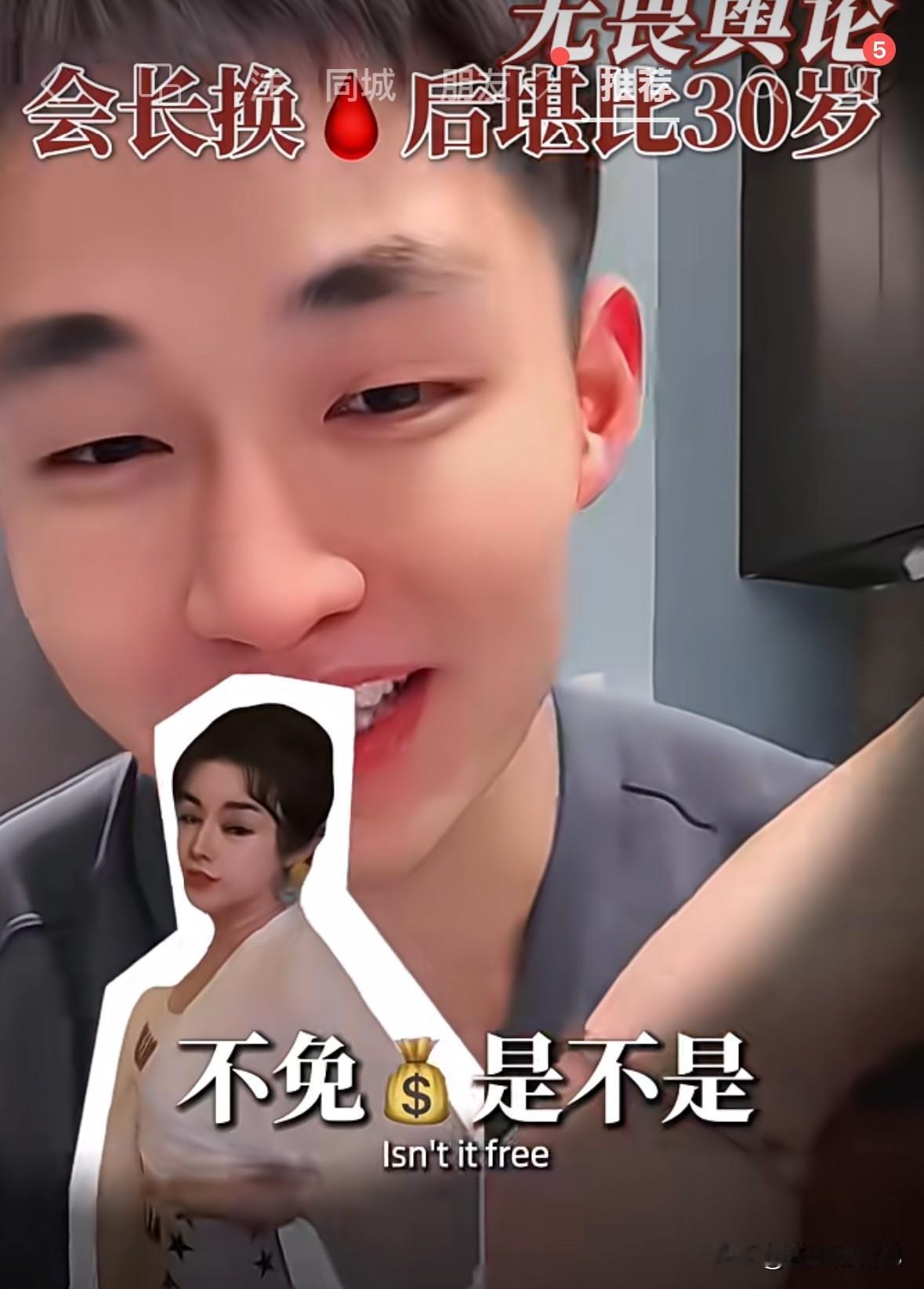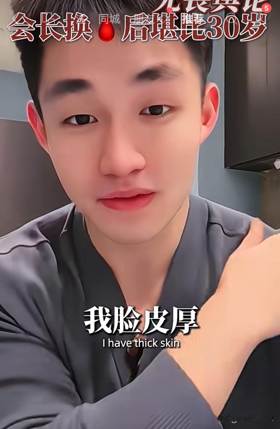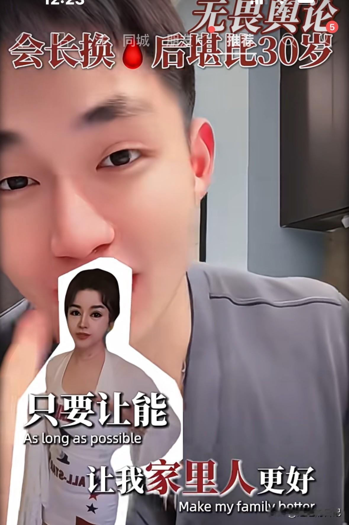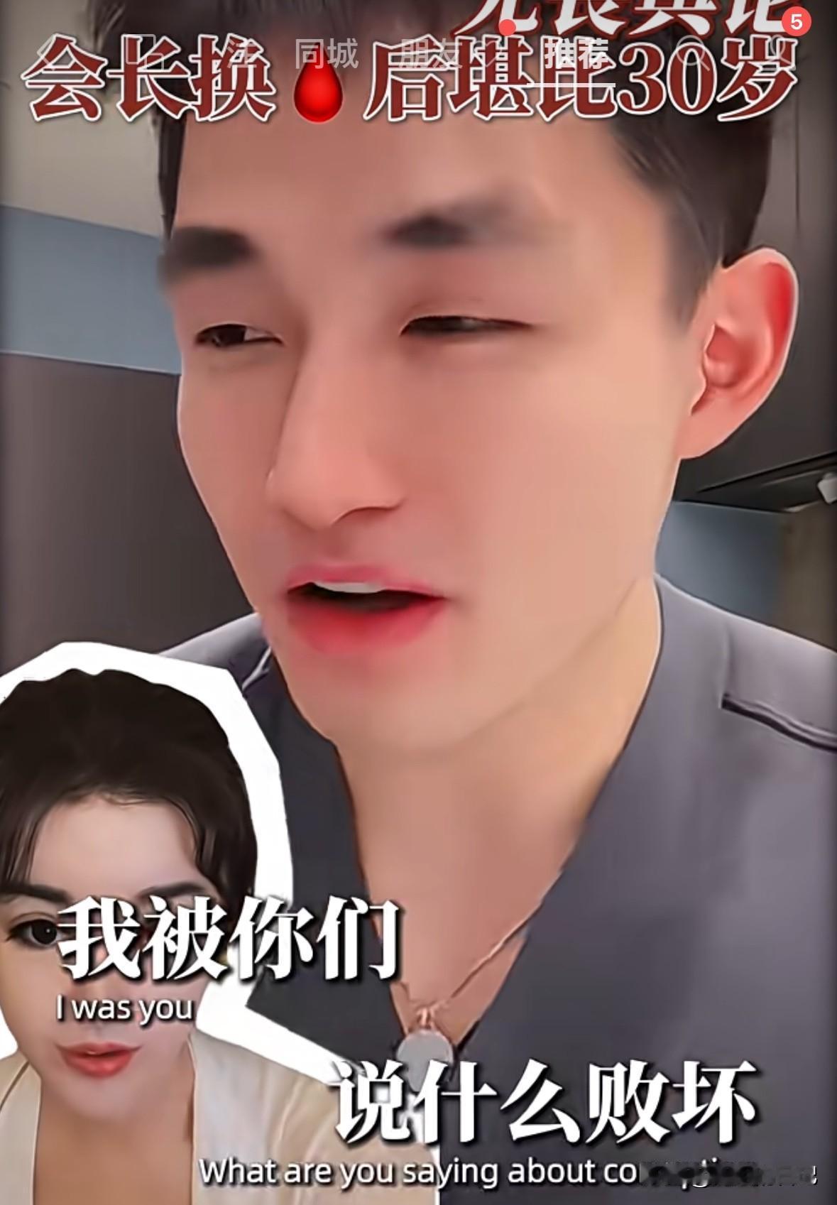 于文红小男友说,“我要让我妈妈来做这个项目,那一定是免费的”。看来就是薅羊毛的呀。 于文红小男友说了“于文红的皮肤状态比自己妈妈都好,他现在想让他妈妈也来换🩸,而且现在他妈妈做也是免费的。你们骂我脸皮厚,吃软饭都没关系,只要梦给家人带来健康,也是我尽孝,为家人创造价值了”。 哎呀妈呀,明晃晃的,一点都不隐藏自己的贪婪。不是富二代么?不是有上市公司么?我就不信了,有上市公司的富二代父母,会相信她的鬼话,来换什么🩸,会让自己儿子毫无尊严吃软饭。 我们都是穷人,一个月两千万我们消费不起,我们一辈子也没见过两千万,太吓人了。你们别在我们穷人这里浪费时间了,用你们的智商,去劝劝马云之类的大富豪,让他们用用你们的不老产品吧。
