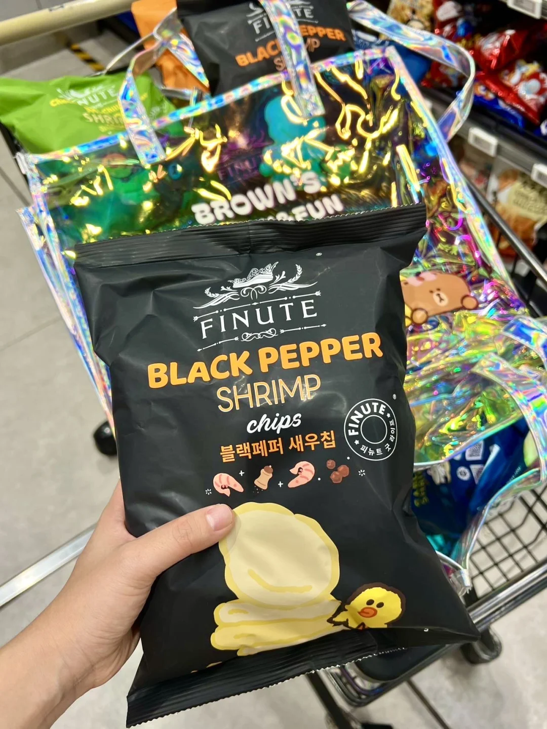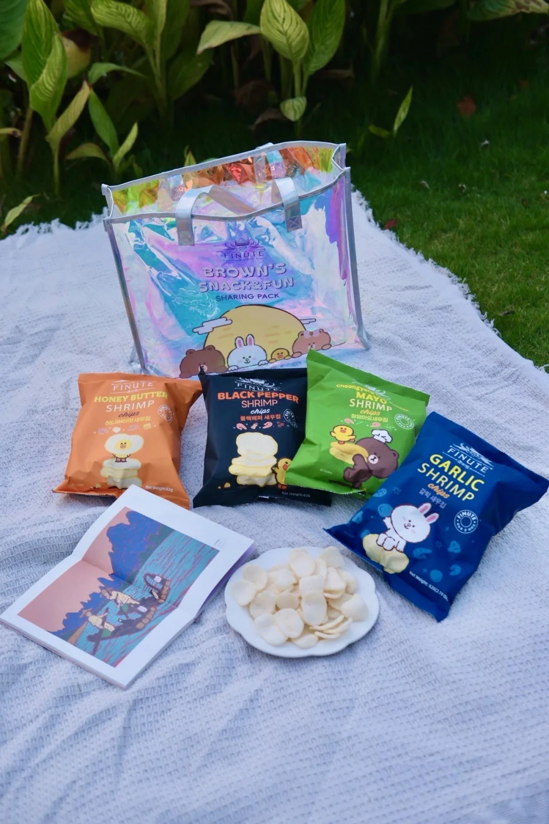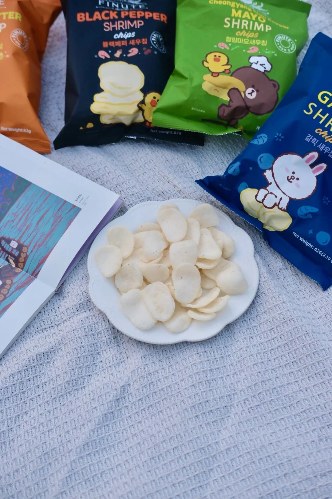 在盒马闲逛时无意间捞到的宝藏 FINUTE布朗熊联名虾片礼盒 镭射包装在阳光下闪着彩虹光 还没拆开就被颜值暴击💘 撕开包装那刻真的惊到—— “哗”地涌出浓郁虾香!” 看了成分表才发现用了13%真实虾肉 难怪鲜味这么足!🦐 超大份248g贴心地分了4小包 现在秋游随手塞一包在帆布包里 完全不用担心受潮或者吃不完 62g的份量简直是随身零食黄金比例✨ 四个口味都长在我的味蕾上: 🌶️ 青阳辣椒蛋黄酱——辣劲过后浮起沙沙的蛋黄香 🍯 蜂蜜黄油——像把融化的太妃糖裹在云朵上 🧄 经典蒜香——每片都挂着细密调料,吃完偷偷嗦手指 ⚫ 黑胡椒——微微辛辣勾着继续伸手去掏下一片 最惊艳的是它的薄脆度! 咬下去的瞬间能听见“咔嚓”声在齿间炸开 接着浓郁的鲜味就漫上舌尖 坐在野餐垫上不知不觉就消灭半包 闺蜜直接抢过去把封口扎紧(笑) 现在它已经晋升为我的秋日必备清单: 爬山时揣一包补充能量 公园长椅上看落叶时当零嘴 甚至办公室下午茶拆一包 整个部门都会循着香味凑过来… 这种能提升幸福感的小零食 才是秋天最对味的打开方式呀🍁