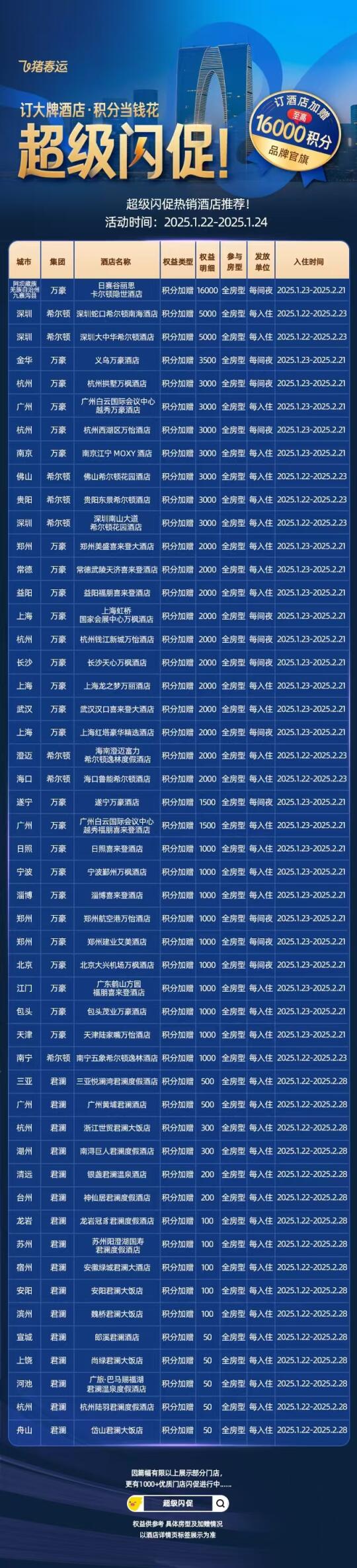 📌本次是2025年第二场促销,名单含希尔顿、君澜、华天