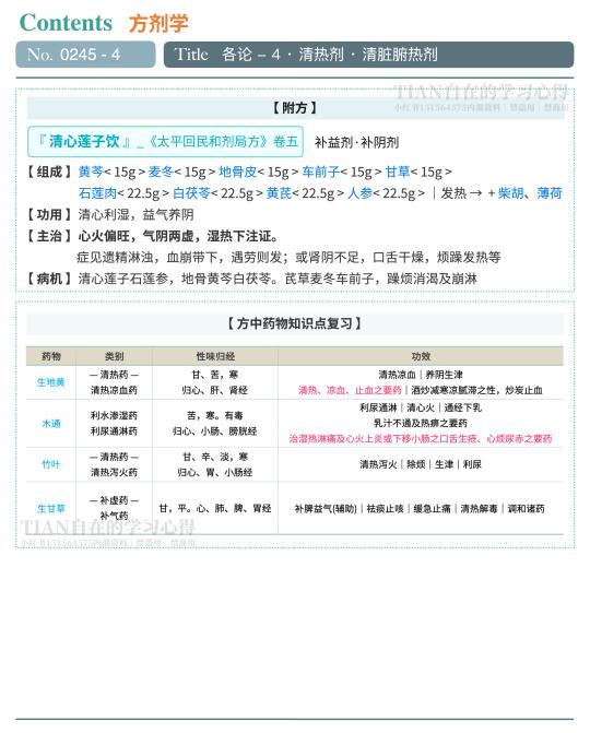 【 清心莲子饮 】心火偏旺,气阴两虚,湿热下注证