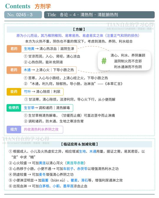 【 配伍特点】滋阴而不恋邪,利水而不伤阴,泻火而不伐胃