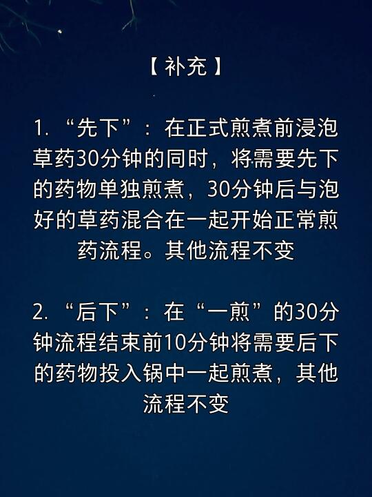 这一年的跟诊中,解答最多的问题就是🀄️药应该怎么煎~虽然药包上都有文字说明,但对于老人或者从没自己煎过药的人来说还是一件需要琢磨琢磨的事情。 刚好最近请老师帮忙开了几剂药调理身体,拍了照片仔细给大家演示一下流程吧~ 【关于用什么锅】 选择一:传统砂锅 选择二:电药锅 【煎药步骤】 1. 将一剂草药倒入锅中,并用冷水浸泡30分钟 2. “一煎”:传统砂锅➡️大火10分钟+小火20分钟 电药锅➡️选择中药档位煎煮30分钟 3. 滤出药汤备用 4. 锅中注入适量温水没过已煎煮过一次的草药 5. “二煎”:传统砂锅➡️中/小火20分钟 电药锅➡️中药档煎煮20分钟 6. 滤出药汤,并与“一煎”滤出的药汤混合在一起 7. 混合后的药汤分早、晚两次服用 8. 关于“先煎”:在第1步骤冷水浸泡草药30分钟的同时,将需要先煎的药物单独煎煮30分钟,后与浸泡好的草药一同开始正常煎药流程 9. 关于“后下”:在“一煎”流程结束前10分钟,将需要后下的药物投入锅中一同煎煮,其他流程不变 以上,你学会了吗? PS. 🀄️药自己煎疗效大于医院代煎,代煎疗效大于颗粒~各位自行选择哦~~