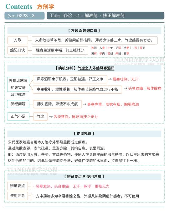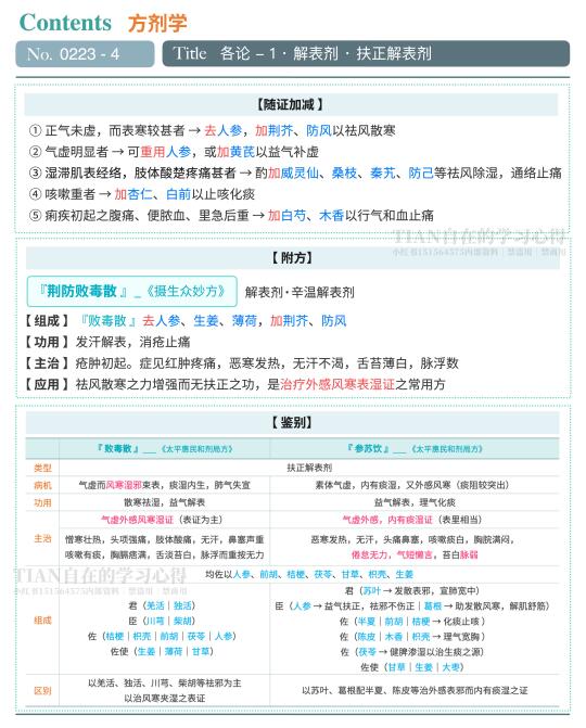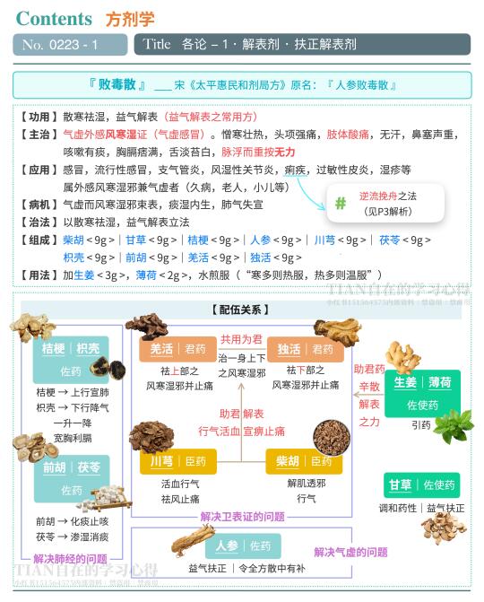 🐾今天学益气解表的常用方『 败毒散 』,还有附方『 荆防败毒散 』和对比方『 参苏饮 』也列在这里啦~