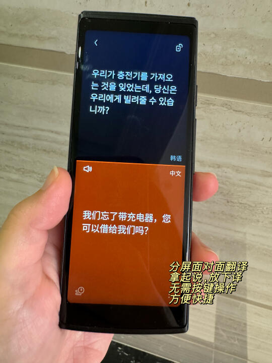 ✅面对面翻译:刚落地去办理入住酒店时,我说中文→屏幕显示韩文给前台姐姐看,她用韩语解释→中文翻译实时展现,了解酒店细节0误差👍在家我还担心能不能顺利入住,真的很方便