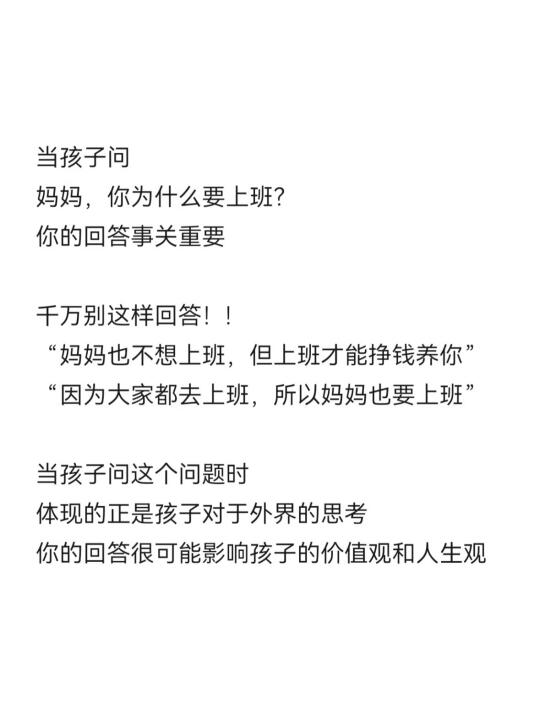 ▫️如果你这样回答,孩子会认为:上班就是为了赚💰,赚💰就是为了吃喝