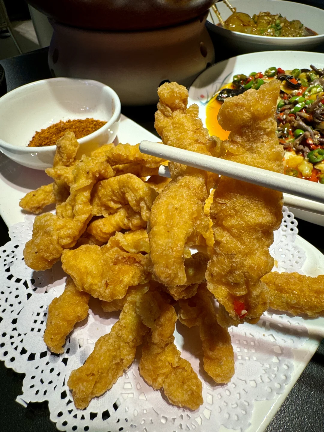 万象天地附近的创意川菜馆儿 环境很不错,适合朋友小聚,价格也不贵 新更的菜单感觉更合我口味了~ 小酥肉份量特别足,外酥里嫩 泰椒土豆丝、水煮吊龙、火爆双脆… 这几个菜我吃了两碗米饭🍚好吃好吃😋