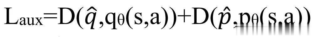 辅助损失L_aux用于那些具有预定义语义的预测,即动作价值(q)和辅助策略预测(p),具体如下: