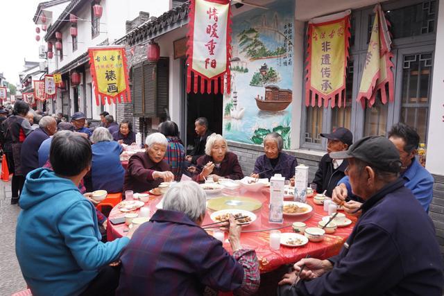 廊下镇山塘村的王阿婆笑着说:“连续三年来吃家宴,菜一年比一年香,和老姐妹们一起过节,比家里还热闹!”