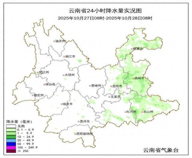 全省平均雨量0.1毫米,其中曲靖市0.6毫米,其余州(市)在0.5毫米以下。