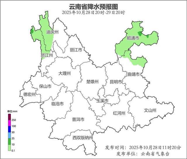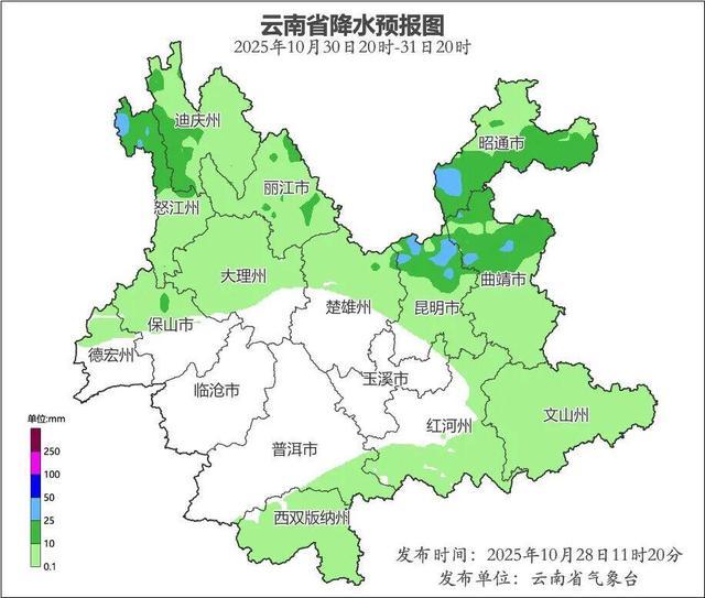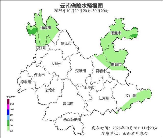 云南省地质灾害气象风险预警:预计,2025年10月28日20:00~10月29日20:00,全省无三级及三级以上地质灾害气象风险预警。
