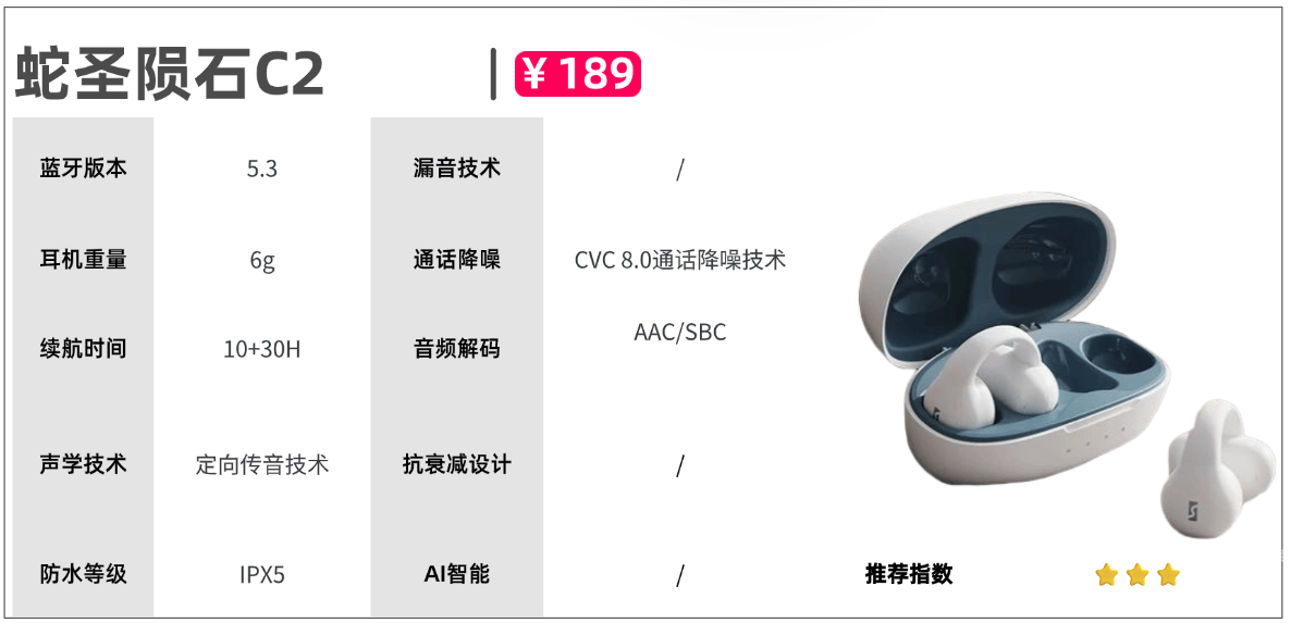 整体来看,蛇圣陨石C2是一款特点鲜明的耳机,它拥有出色的续航和可靠的通话降噪,非常适合作为运动时的通讯工具。但其在音质和长时间佩戴舒适度上的短板也比较明显。