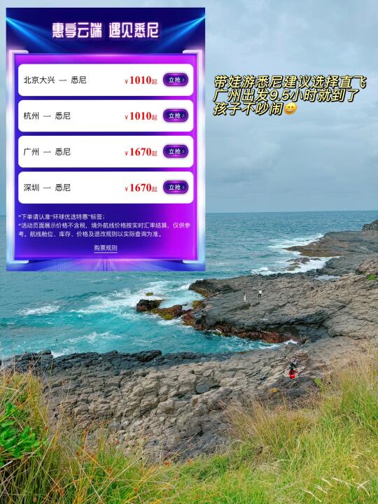 这次带yeye从广州直飞悉尼🇦🇺选了南航真心省妈!9.5小时不转机,不用在机场折腾中转。航班有早上和晚上时段,我们选了晚上9点那班,yeye看两部动画片睡一觉就到了,全程不闹腾。最惊喜的是机票有套餐选择,实力省钱!下次去悉尼还是会选它。