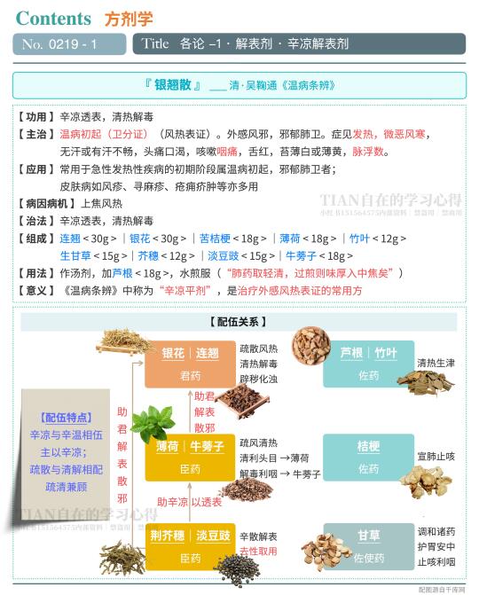 🌈今天学辛凉解表剂的代表方之一《银翘散》 ~