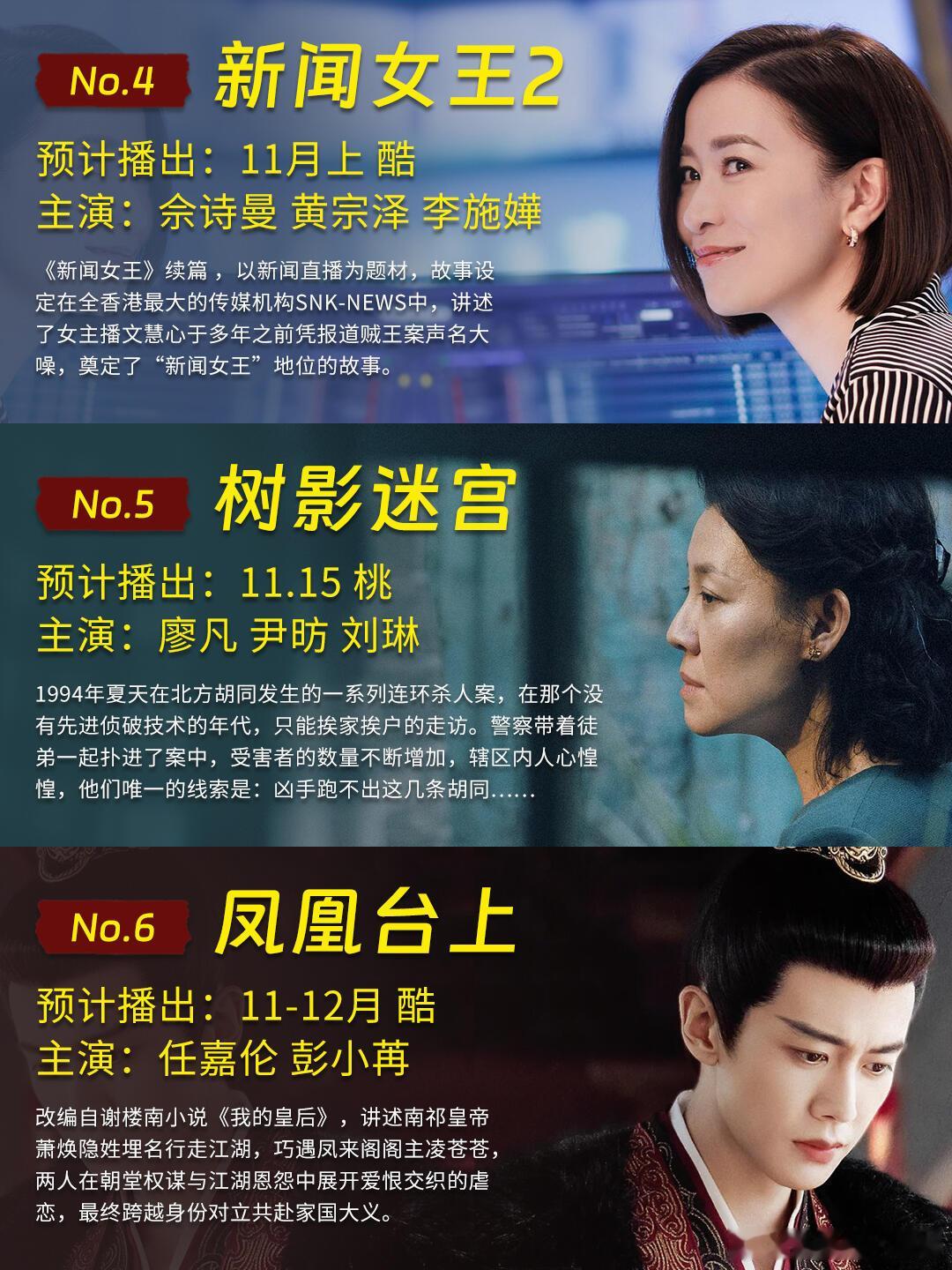 11月续集有唐朝诡事录之长安、新闻女王2,系列前作的剧粉们可以快乐食用起来啦。唐诡完全就是剧情为王火起来的,后者则全是童年港星,爱TVB的不要错过。