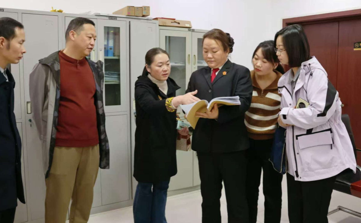 随后,考察组重点关注了内乡法院民企商事金融纠纷调解中心的运行情况。在调解中心,刘晓萌庭长围绕案件先行调解机制、调解成功率、当事人反馈意见,以及先行调解案件的后续分流、司法确认程序等关键内容进行了详细阐述。考察组通过查看调解案件台账、与调解员现场沟通等方式,全面了解了内乡法院在推动诉源治理、化解民企商事金融纠纷方面的经验做法,对其在降低当事人诉讼成本、提高纠纷化解效率上取得的成效给予高度认可。