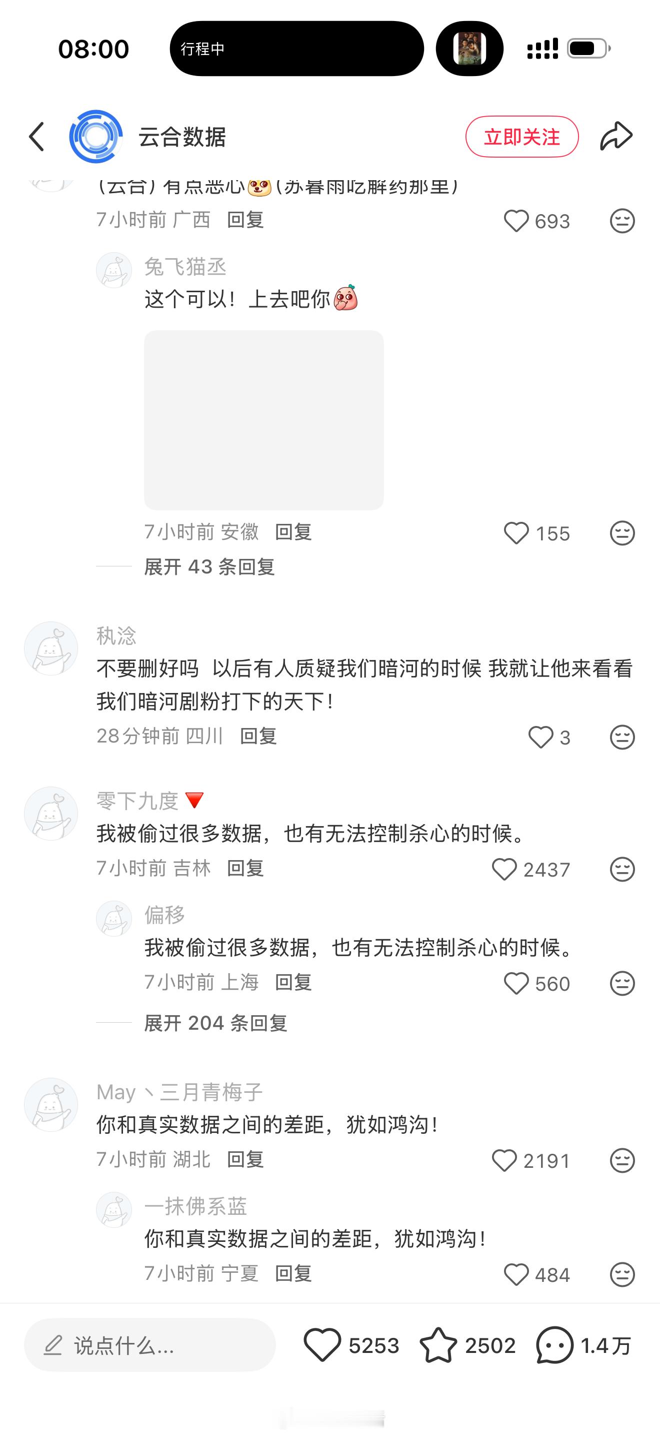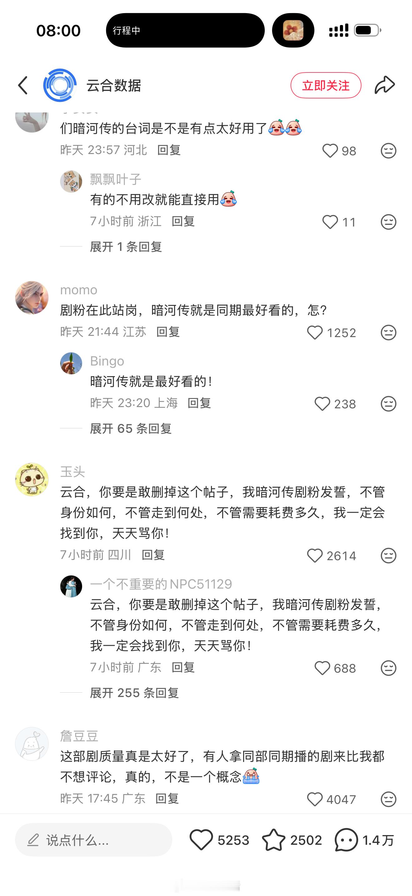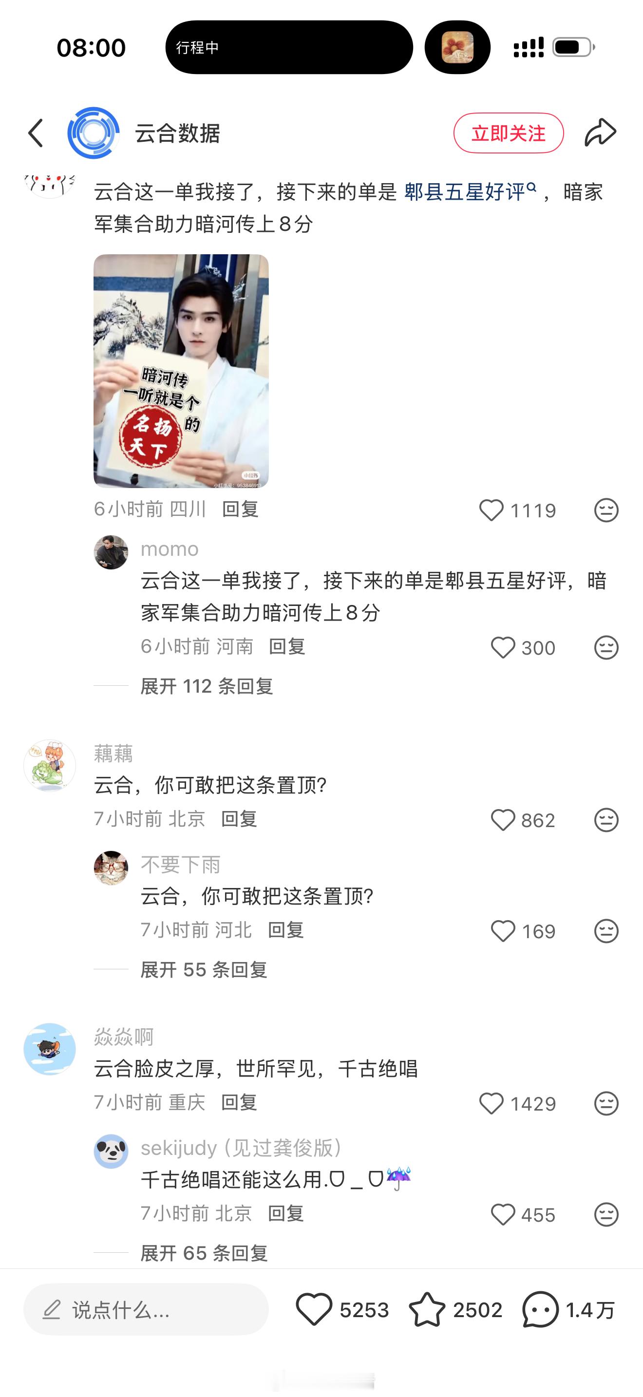 云合数据小红书评论区被暗河传剧粉玩梗贴脸开大了,这评论区笑不活了[允悲]