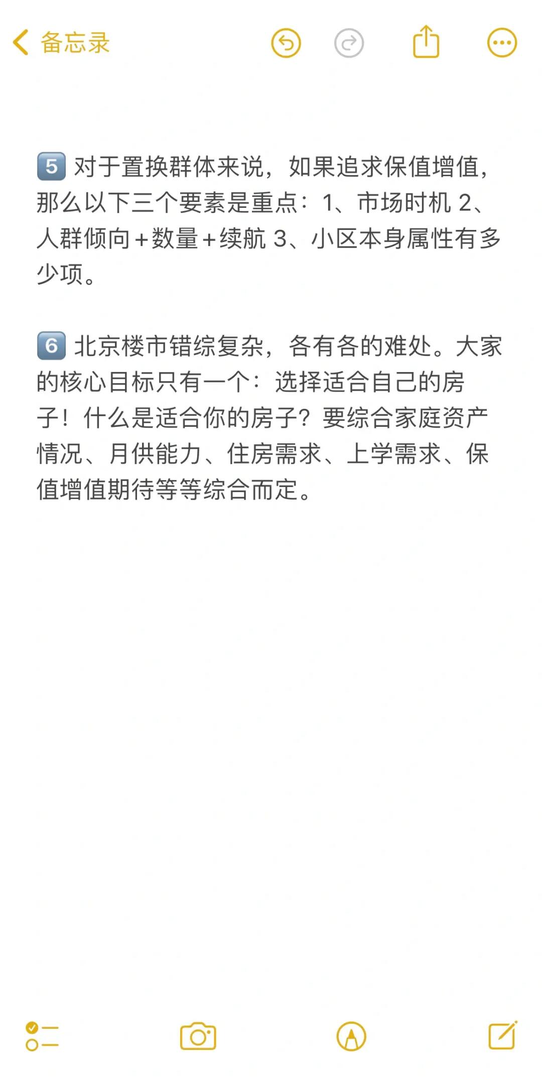 6️⃣ 北京楼市错综复杂,各有各的难处。大家的核心目标只有一个:选择适合自己的房子!什么是适合你的房子?要综合家庭资产情况、月供能力、住房需求、上学需求、保值增值期待等等综合而定。