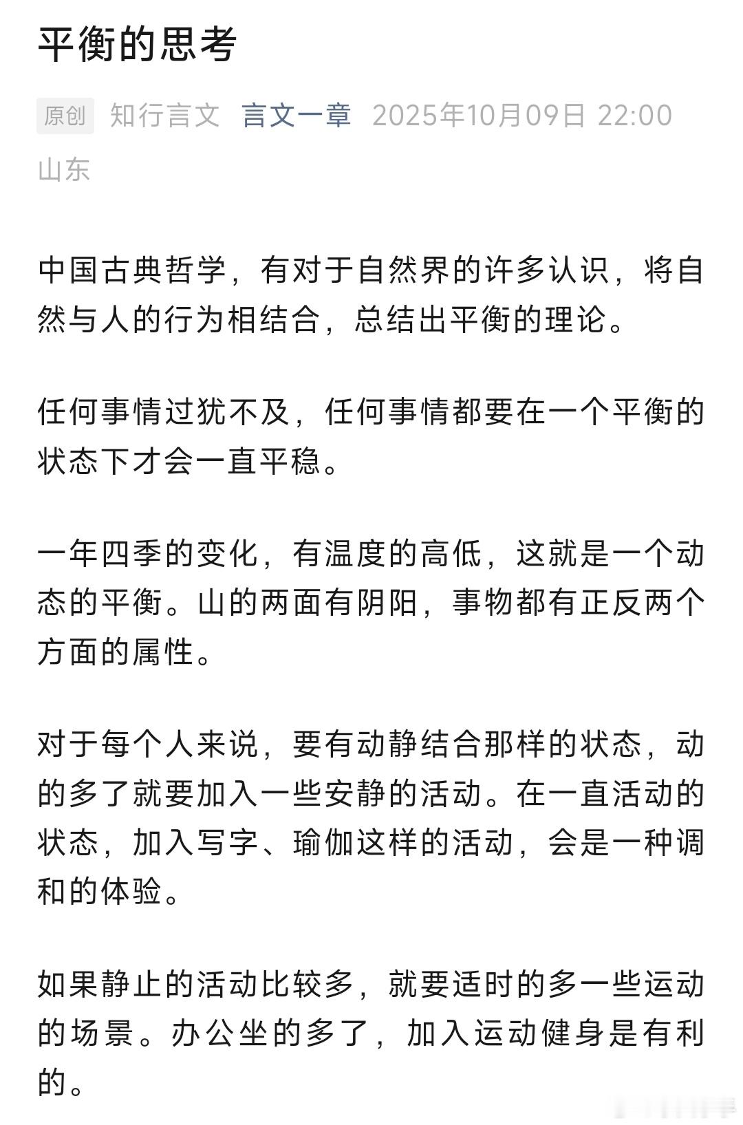 中国古典哲学,有对于自然界的许多认识,将自然与人的行为相结合,总结出平衡的理论。
