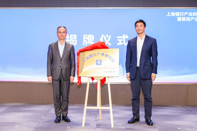 仪式现场,上海银行董事长、上海银行产业研究院院长顾建忠与上海银行行长、上海银行产业研究院执行院长施红敏共同为研究院揭牌。
