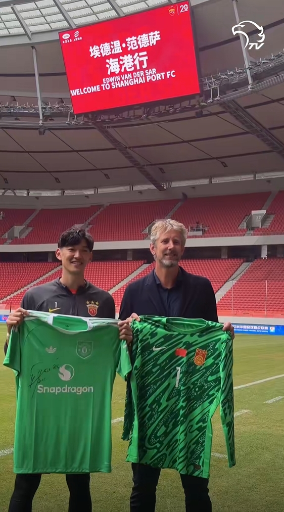 直播吧10月30日讯今日上海海港官方社媒晒出备战vlog,球队门将颜骏凌和曼联传奇门将范德萨交换球衣,颜骏凌收获了一件范德萨的签名曼联球衣,而范德萨则获赠一件中国国家队的门将服。