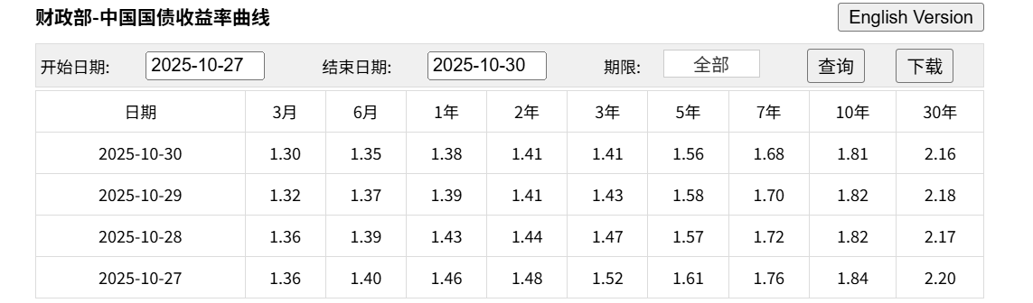 不过,10月27日央行宣布恢复公开市场国债买卖后,短期对重仓债券的南京银行构成明确利好。从最新国债收益率数据看,截至10月30日,各期限国债收益率延续下行趋势,其中10年期国债收益率从政策发布当日的1.84%降至1.81%,30年期从2.20%降至2.16%,债券价格同步上涨。