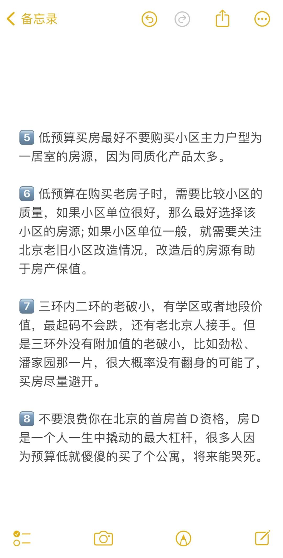 8️⃣ 不要浪费你在北京的首房首D资格,房D是一个人一生中撬动的最大杠杆,很多人因为预算低就傻傻的买了个公寓,将来能哭死。