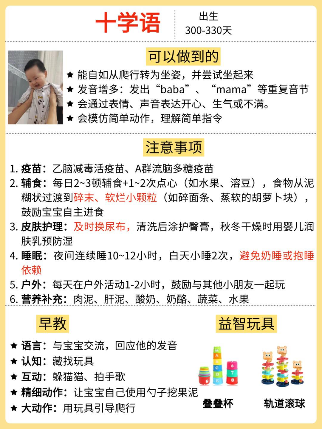 ⭕️0-12月龄宝宝成长口诀&护理要点