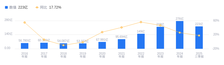 2025年三季度,德赛西威营业收入达223.37亿元,在行业102家公司中排名第2,行业第一名上海钢联为573.18亿元,行业平均数为17.12亿元,中位数为4.19亿元。同期,净利润为18.05亿元,行业排名第1,第二名同花顺为12.06亿元,行业平均数为2643.13万元,中位数为-719.92万元。