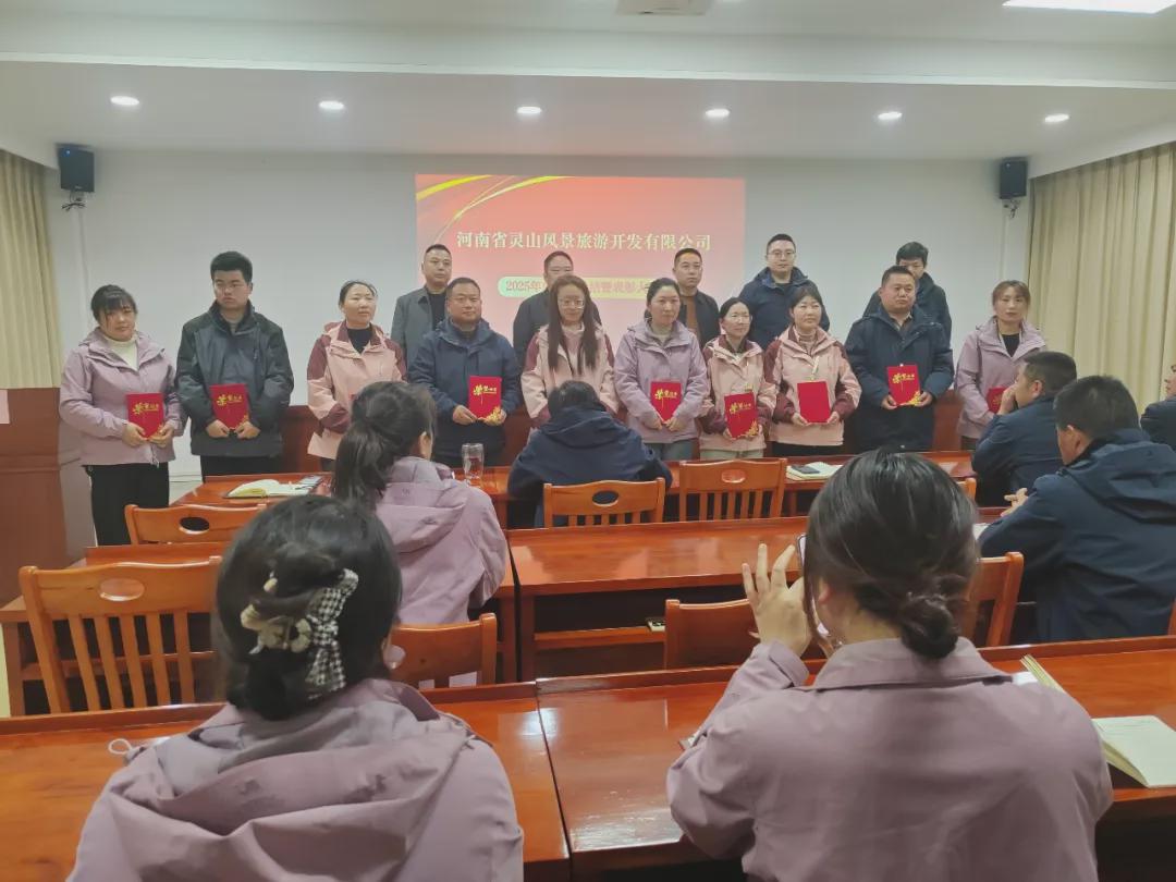 大会上副总经理张乐为宣读《关于表彰2025 年度优秀中层干部、优秀员工、宣传推广先进个人的决定》,对年度表现突出的个人进行表彰颁奖。灵山文旅公司总经理李芳振对灵山风景区2025年做出的成绩给予了充分的肯定和鼓励,并对获奖人员表示了祝贺。随后副总经理牛刚和工会主席王建新就春节假期安全运营、秩序维护、服务保障、应急值守等工作作出专项部署,并现场与相关部门签订2026 年度安全生产目标责任书,压实安全责任链条。