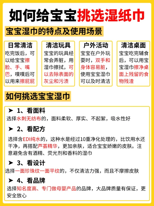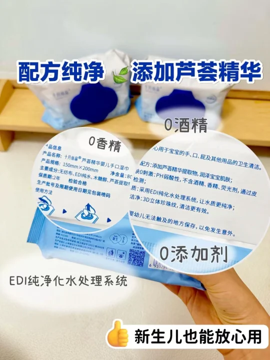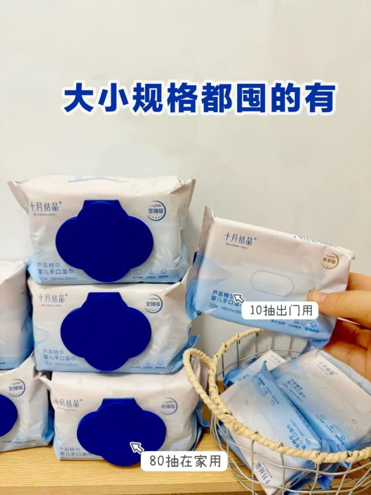 宝宝6月龄左右就要添加辅食了,很多新手妈妈👩会比较焦虑,不知道如何什么时候给宝宝添加辅食、添加顺序是什么样子等,不要着急,这里功课📖都帮各位姐妹整理好了。 ⭕️本文重点如下 1️⃣宝宝辅食添加8个第一口(图1) 2️⃣第一口米粉怎么添加 3️⃣第一口菜泥怎么添加 4️⃣第一口肉泥怎么添加 5️⃣第一口果泥怎么添加 6️⃣第一口辅食油怎么添加 给宝宝添加辅食后,你会发现,宝宝因为对🍜食物的探索,喜欢用手抓着吃,手上、嘴巴上......哪哪弄的全是食物。饭前需要帮宝宝擦手、饭后需要帮宝宝清理食物残渣,给宝宝用的湿纸巾一定要注意成分安全🍃、不易掉絮的那种。 像是我家用的十月结晶芦荟精华湿巾,这款湿巾用水是经过10重净化的EDI纯水(比饮用水还干净),搭配芦荟精华滋润肌肤,无敏配方,🙅没有酒精、香精、荧光剂等有害物质,给娇嫩的新生儿以及敏感肌宝宝用起来很安心!即便是口欲期爱吃手的宝宝也能放心用! 它的纸张又大又厚实,柔韧耐拉扯还不掉毛絮,擦拭还不透污;✨并且含水量很足,挤一下能滋出不少水💦 ✨双面纹路设计,一面珍珠纹,给宝宝擦污渍清洁力很nice;一面平纹,柔软亲肤,给宝宝擦嘴巴擦小脸,不会摩擦皮肤 很多湿纸巾存在连抽现象,这款湿纸巾我用了很多箱,从没出现过连抽,真的是不浪费 我一般大小规格都会囤点,在家用大包装80抽的,出门用便携装的,随时随地给宝宝清洁很方便 姐妹们,宝宝日常高频所用的湿纸巾真的要囤安全放心❤️的,尤其是口欲期辅食期,宝宝经常将小手放入嘴巴,宝宝小手要经常清洁擦拭!