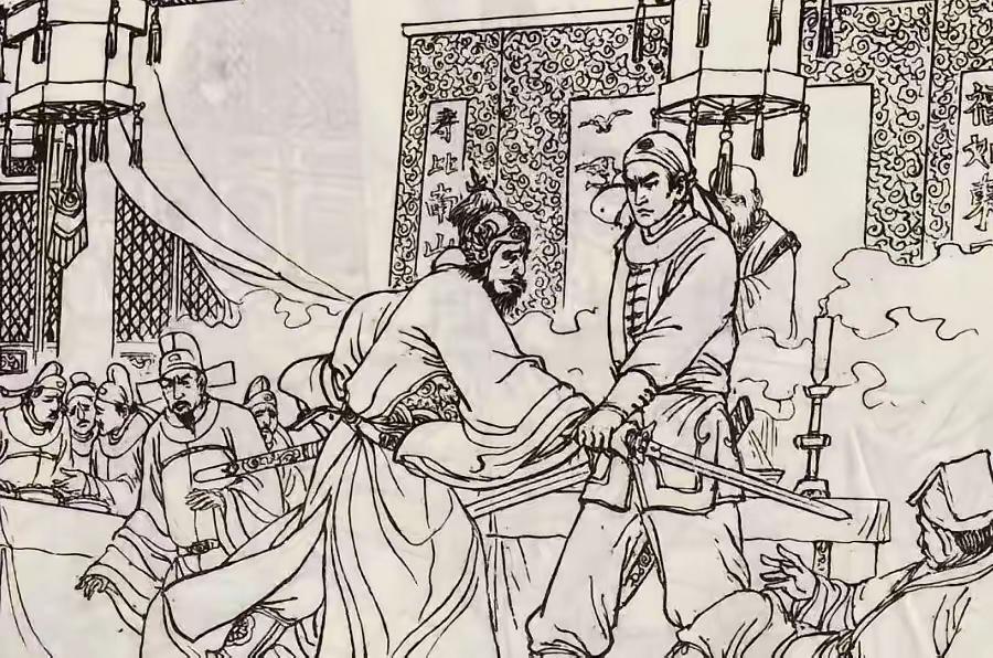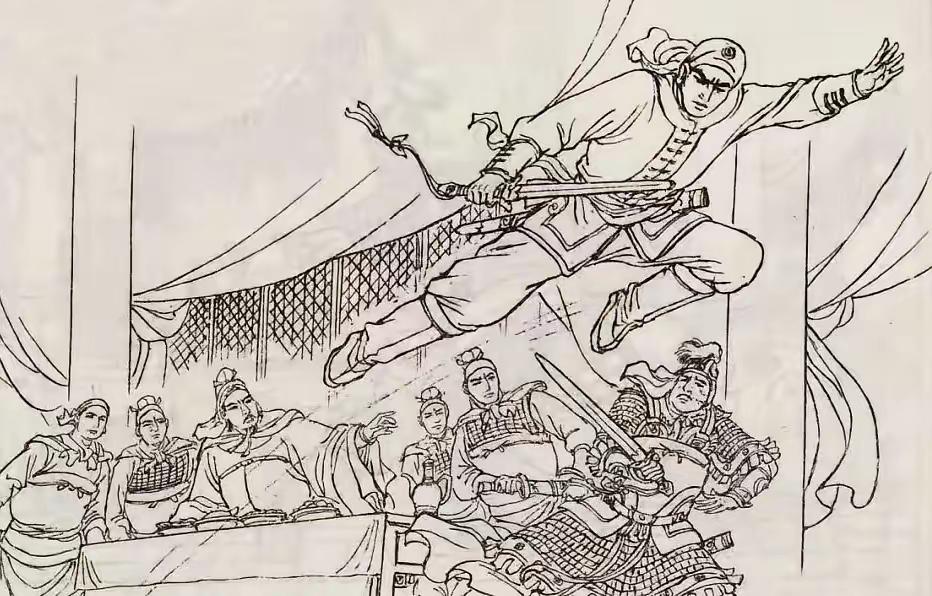 熊占彪邀请和阳王郭子兴来永义城为他祝寿。郭子兴带来很多贵重礼物,熊占彪非常高兴,大排宴席隆重款待各路宾客。 席间,郭子兴的总兵练了一趟剑助兴,熊占彪的大将李文彬见他练的很平常,就想与总兵比剑。两人立下生死文约后,就交起了手。李文彬一招撩阴剑,向总兵裆部划去。这一剑吓的郭子兴惊呼:“总兵休矣!”谁知总兵一个转环腿躲了过去,紧接着一抬腿,一脚踢在李文彬小肚子上。李文彬“噔噔噔”后退几步,跌倒在地。总兵赶上去一剑结果了他的性命。 熊占彪当时就火了,总兵拆穿了他的“鸿门宴”,并把奸细押上