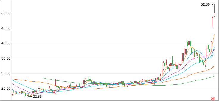 财报发布后,鹏辉能源受到资金抢买。10月30日,鹏辉能源早盘开盘后很快就20cm涨停,报价48.59元/股。10月31日开盘后,鹏辉能源股价继续拉升,一度涨到52.86元/股。截至31日收盘,鹏辉能源报50.03元/股,涨2.96%,总市值251.82亿元。