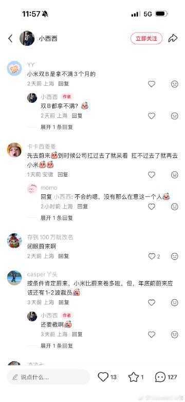 网友在小米和蔚来之间犹豫哪边强度更高呢?【来自懂车帝车友圈】
