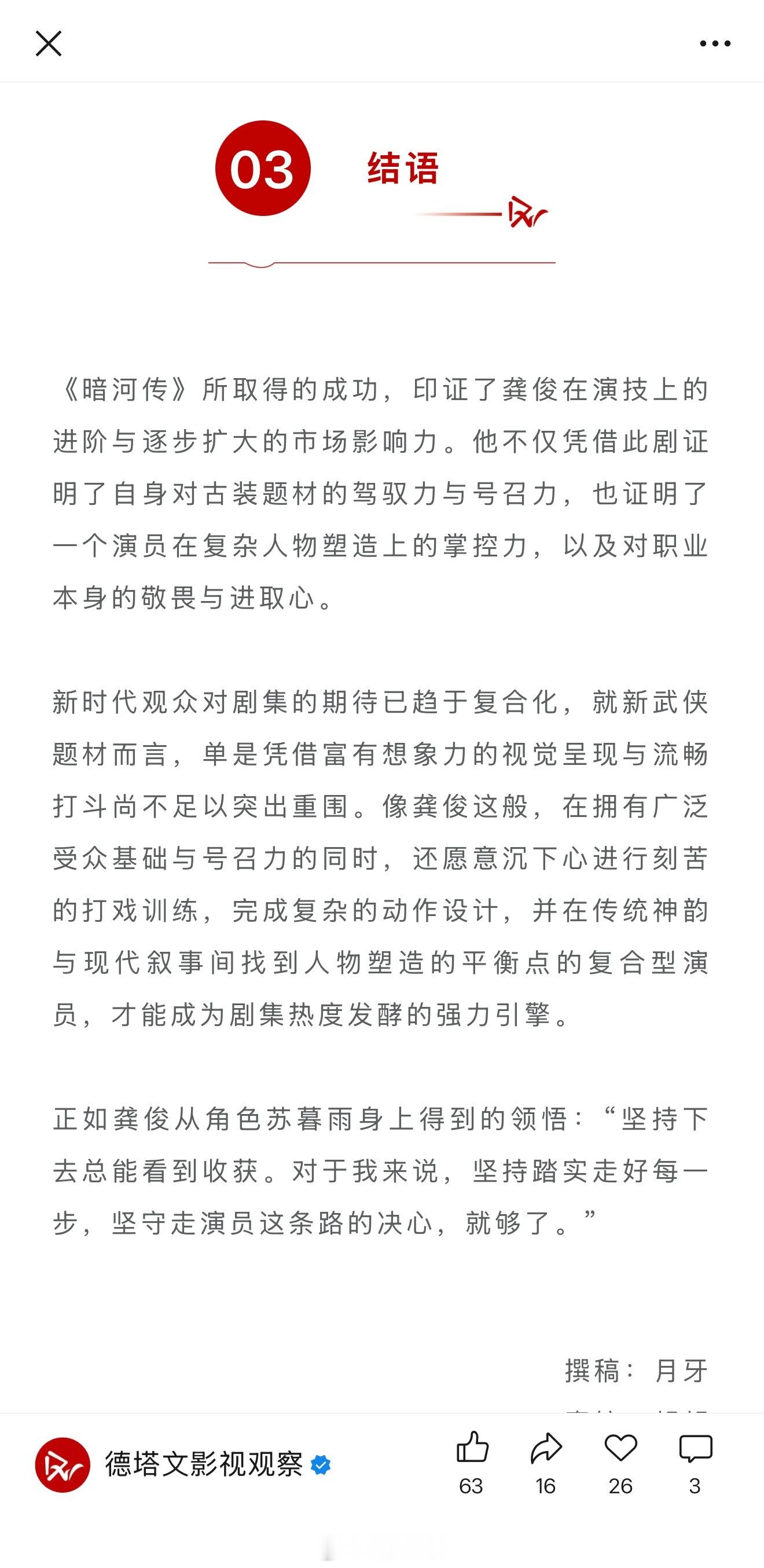 德塔文发文,《暗河传》优酷热度破万,龚俊实力诠释复杂人设