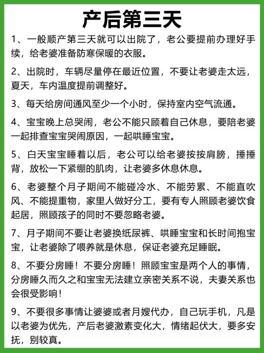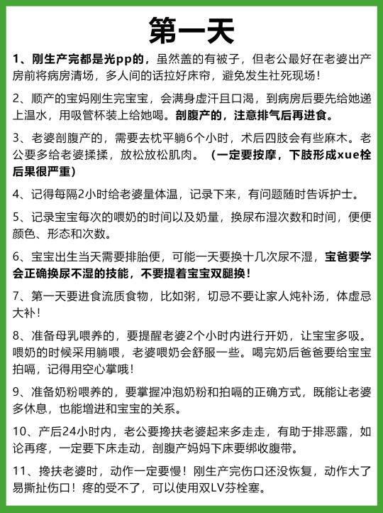 生完要让老公陪产,能一起体验新生命到来的喜悦和妈妈生产的不易,以后会更体贴。 前3天怎么照顾?很多新手爸妈一头蒙,这里整理好啦,快转给老公一起学习,不要到时候手忙脚乱。