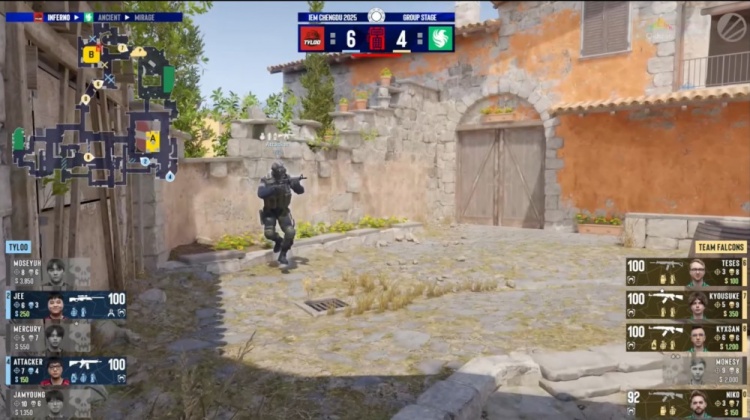 第4局猎鹰两人A二楼开摸,京介摸出二楼击杀Mercury,Jee将其换掉,猎鹰提速中路夹A下包,残局Moseyuh与小鞠保枪,天禄2-2猎鹰。