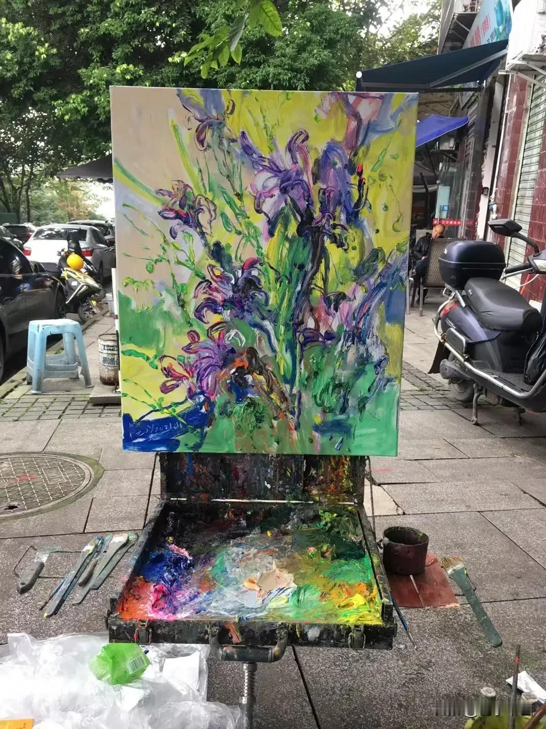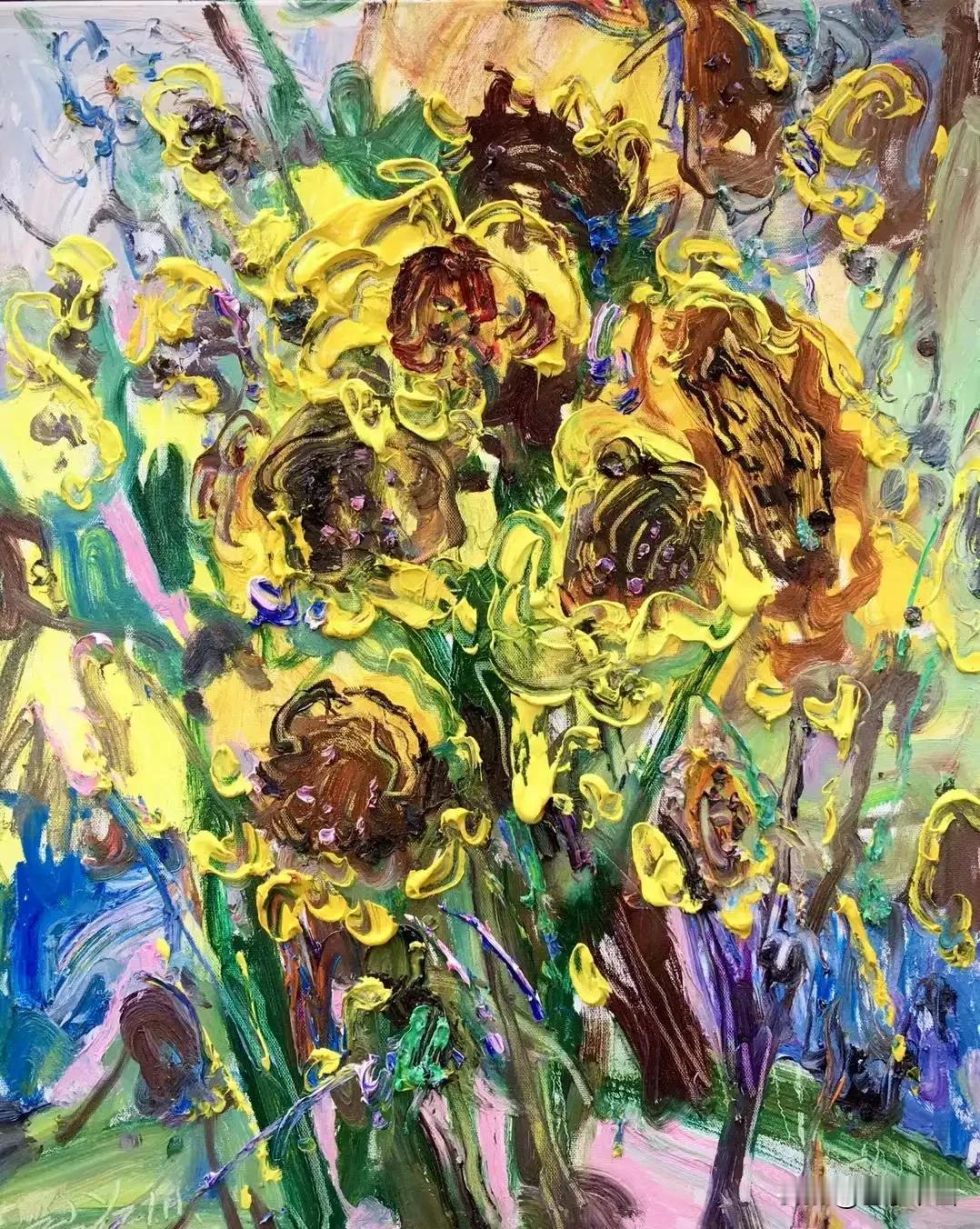 张继渝老师绘画作品欣赏 紫色的百合与太阳花-80x65cm