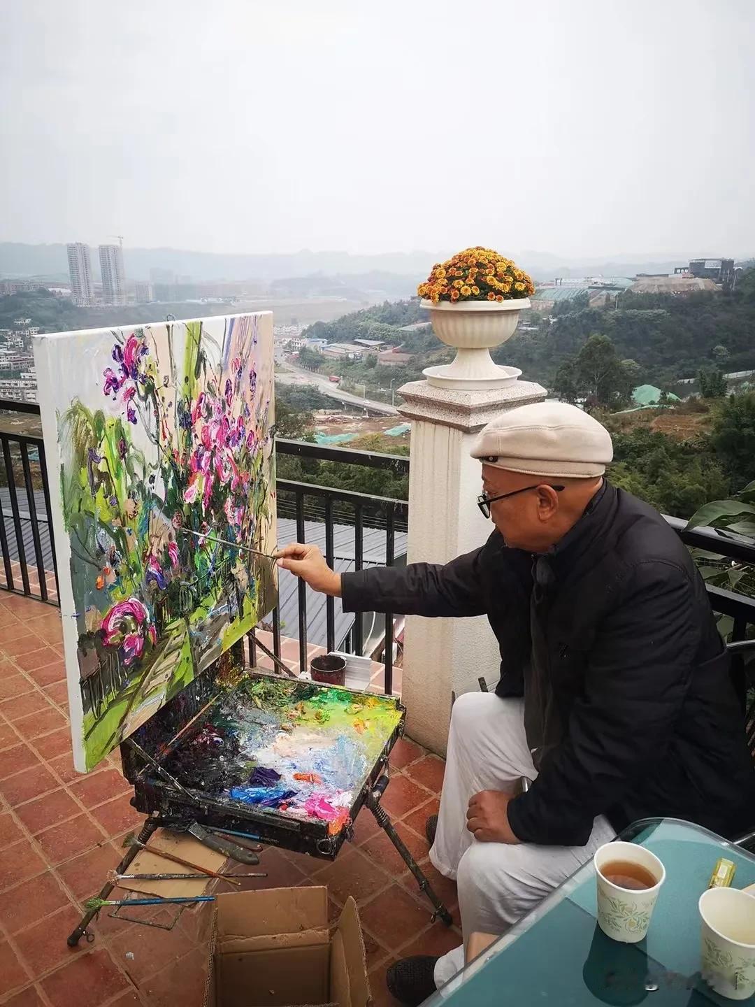张继渝老师绘画作品欣赏 母总御花园中的紫云藤80x80cm