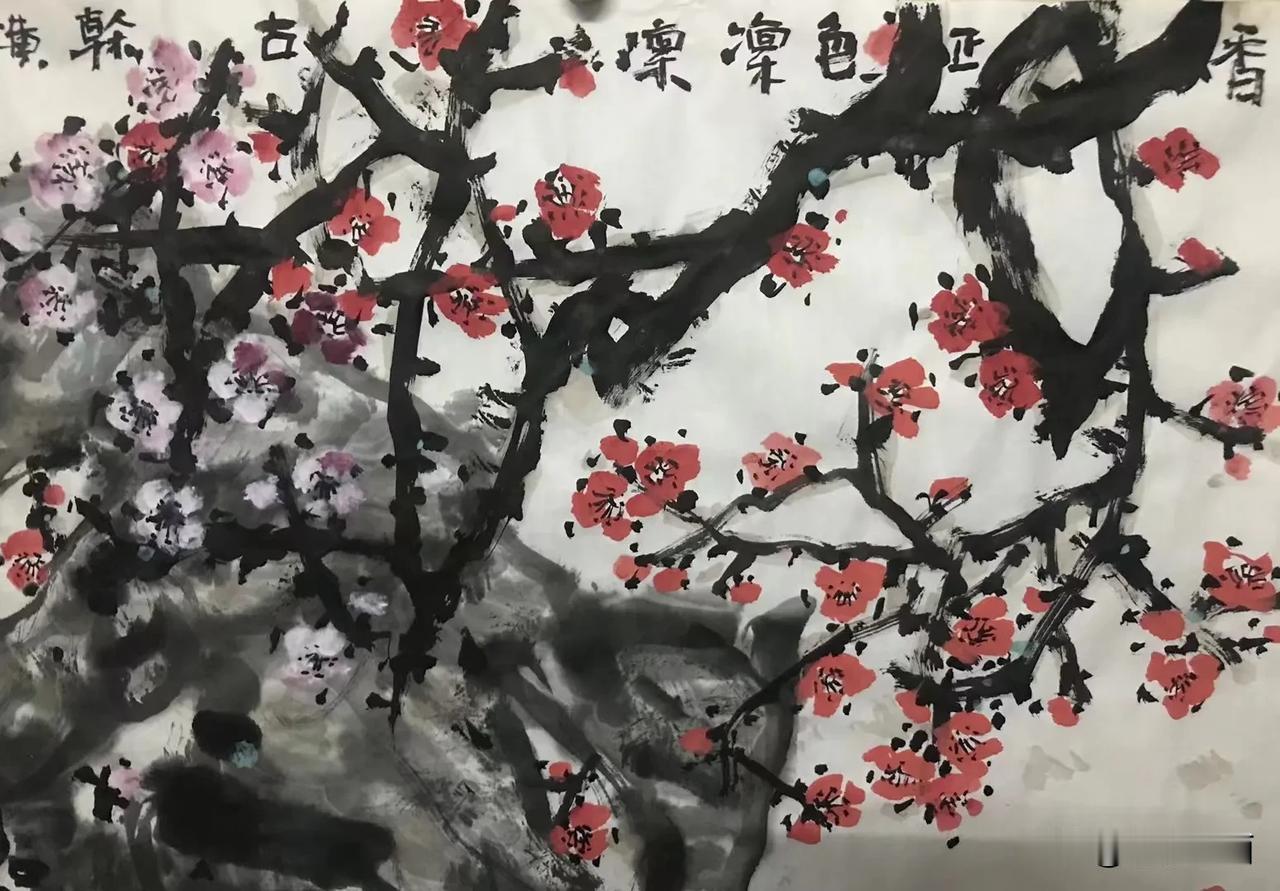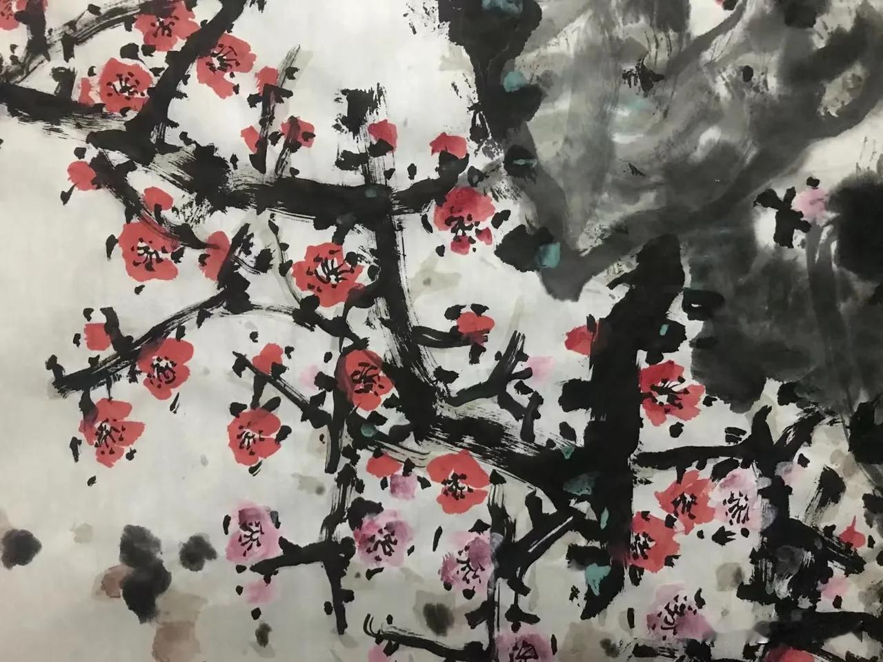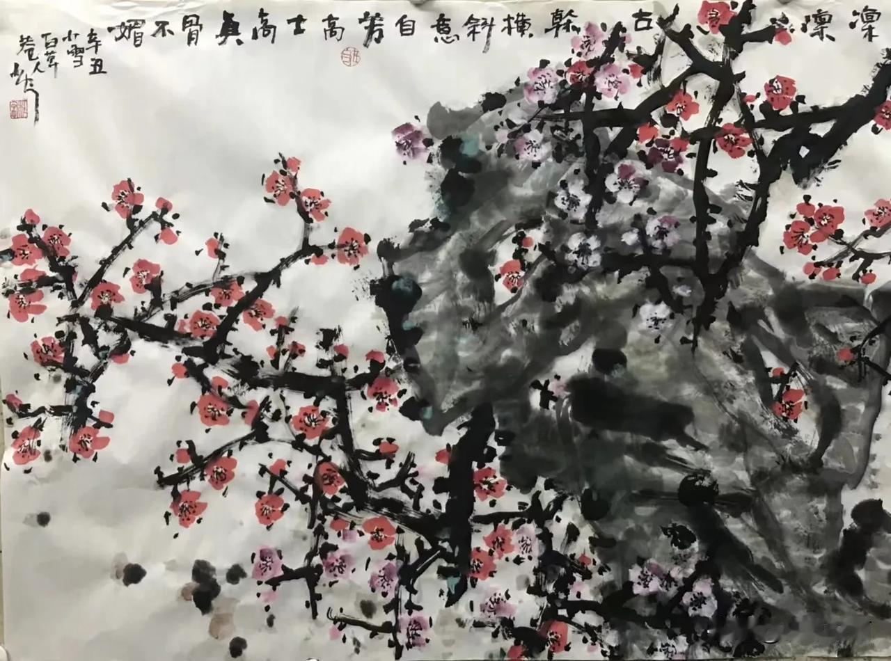 杜宁绘画作品欣赏 正色凜凜,寒不改香 《紅梅圖》70x178cm