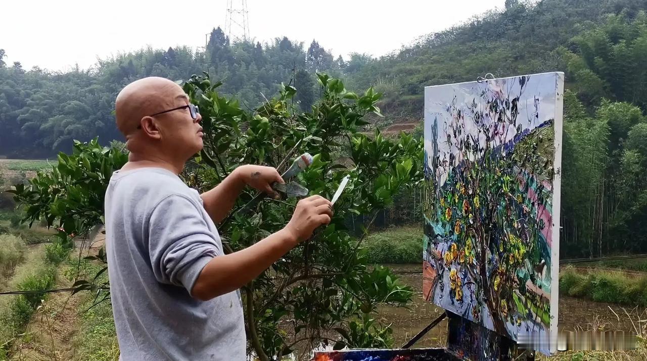 张继渝老师绘画作品欣赏 九沟村的橘子黄了-布面油画-80x65cm