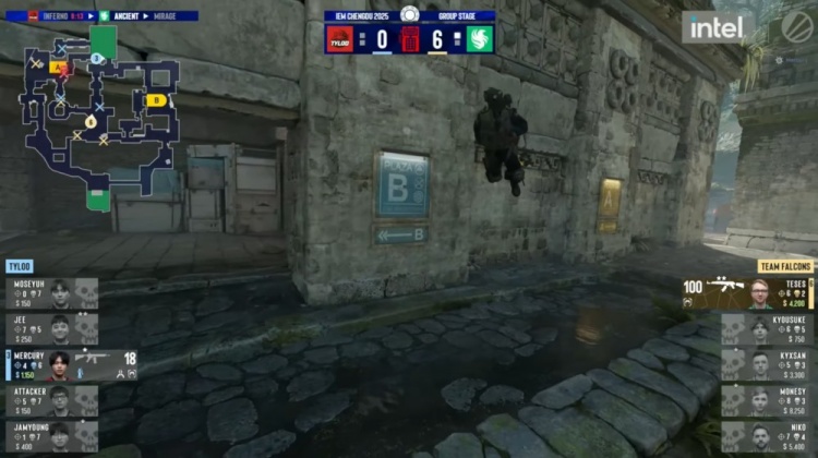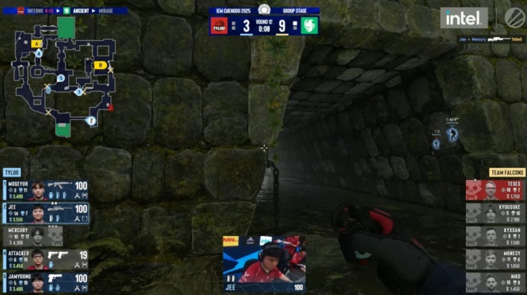第12局Mercury开场黑屋三杀,Jee大狙B点大狙轰掉K3,龙哥中路侧身点掉Mercury后无力回天,天禄3-9猎鹰。