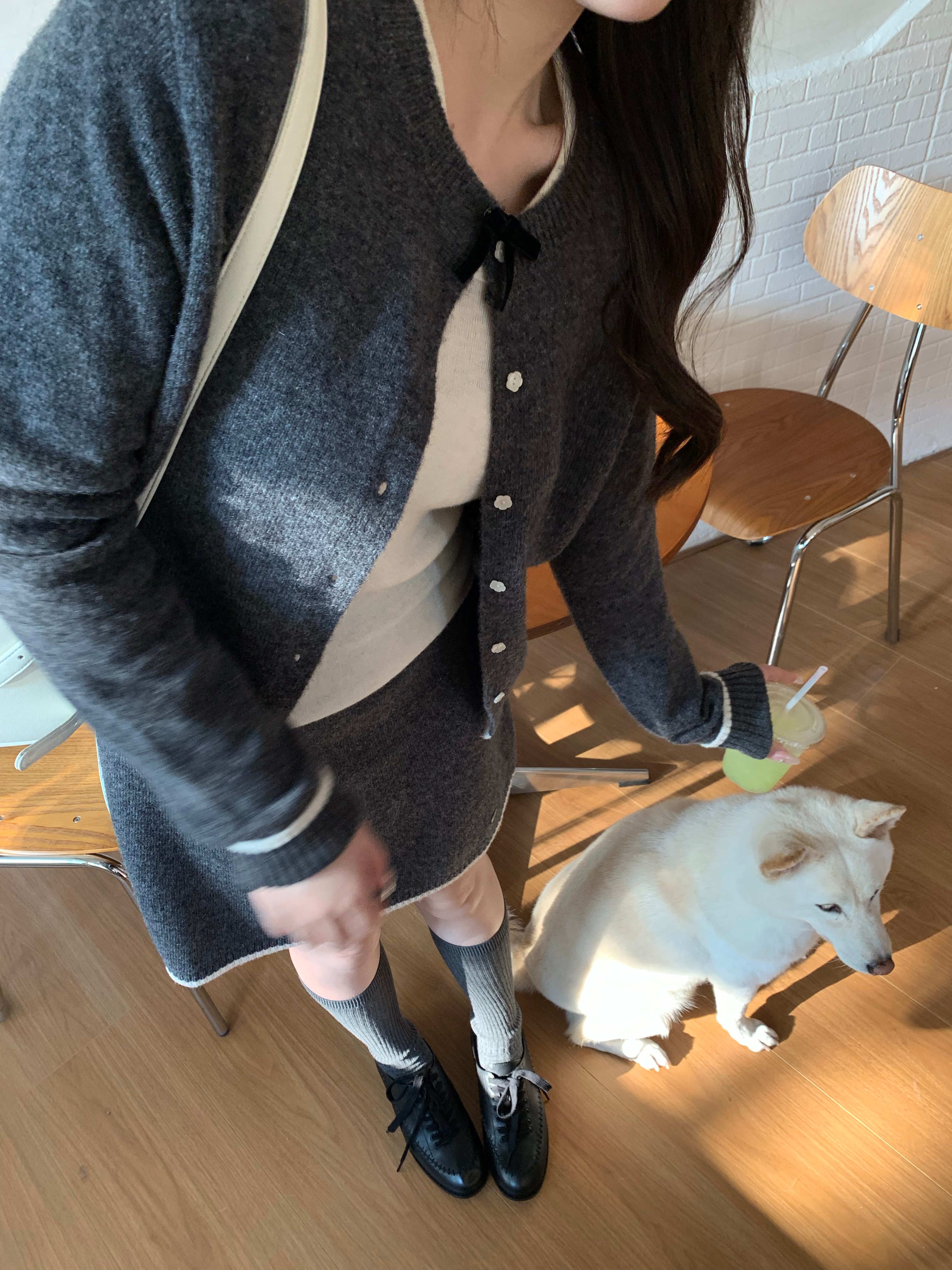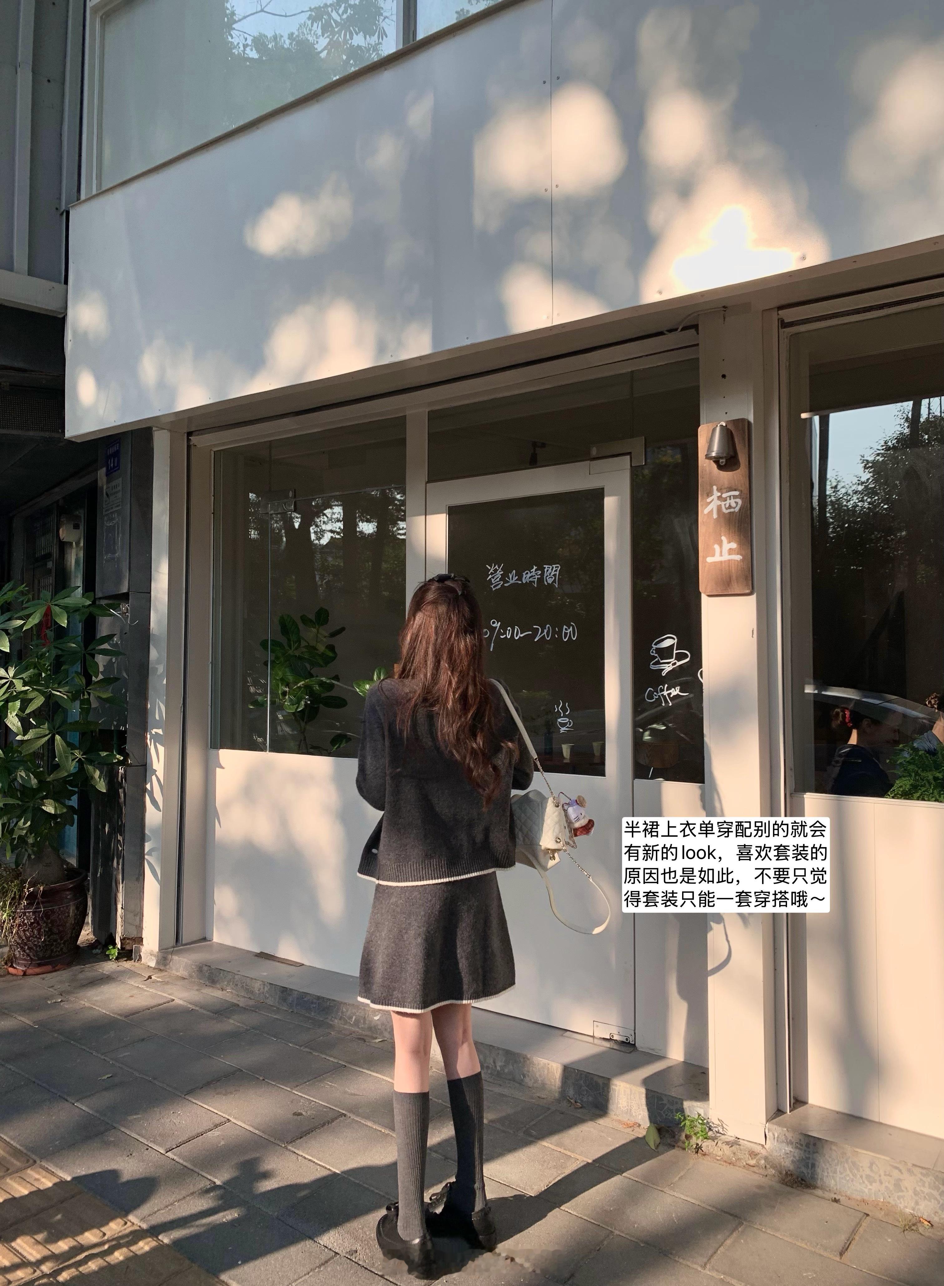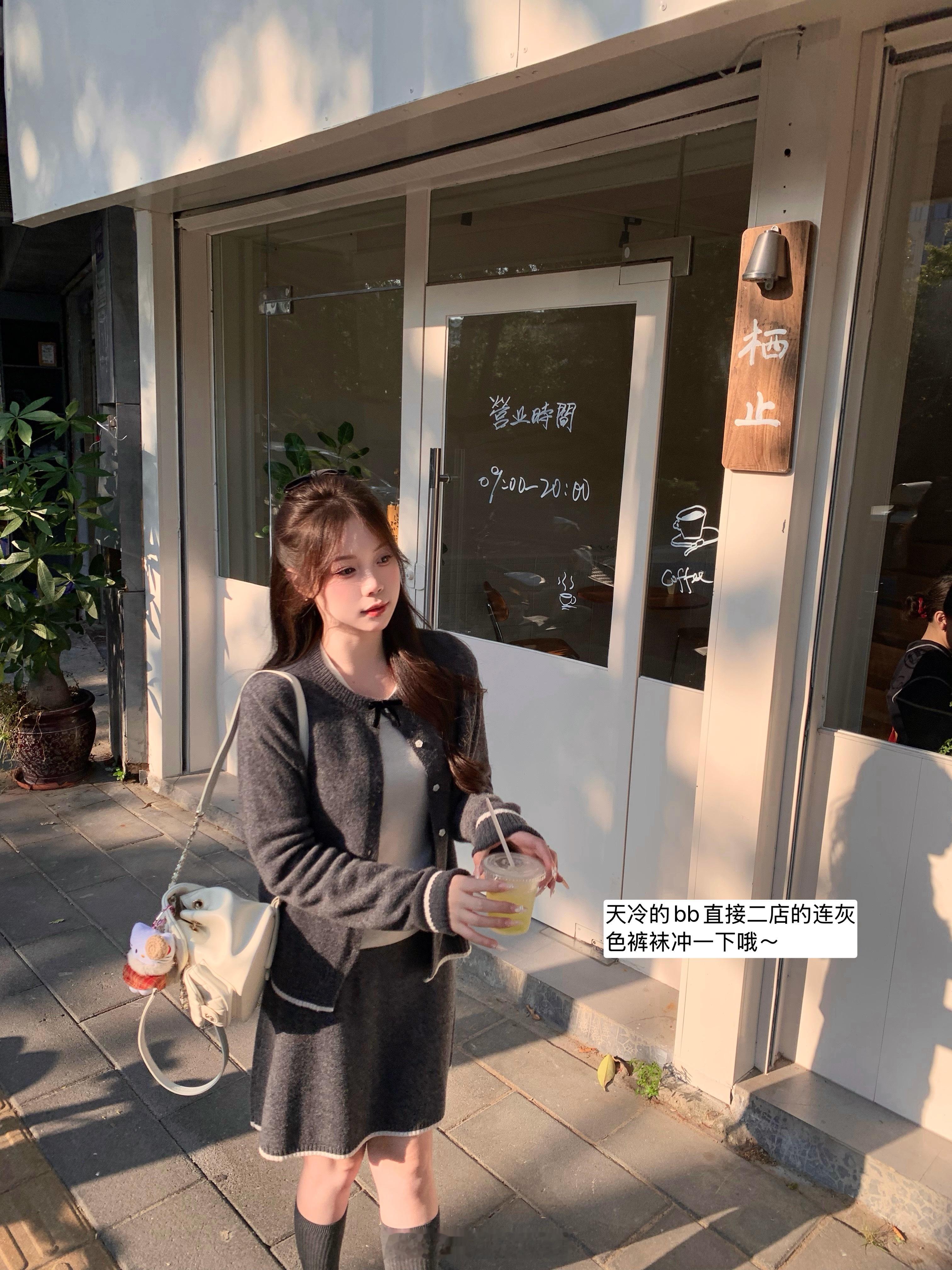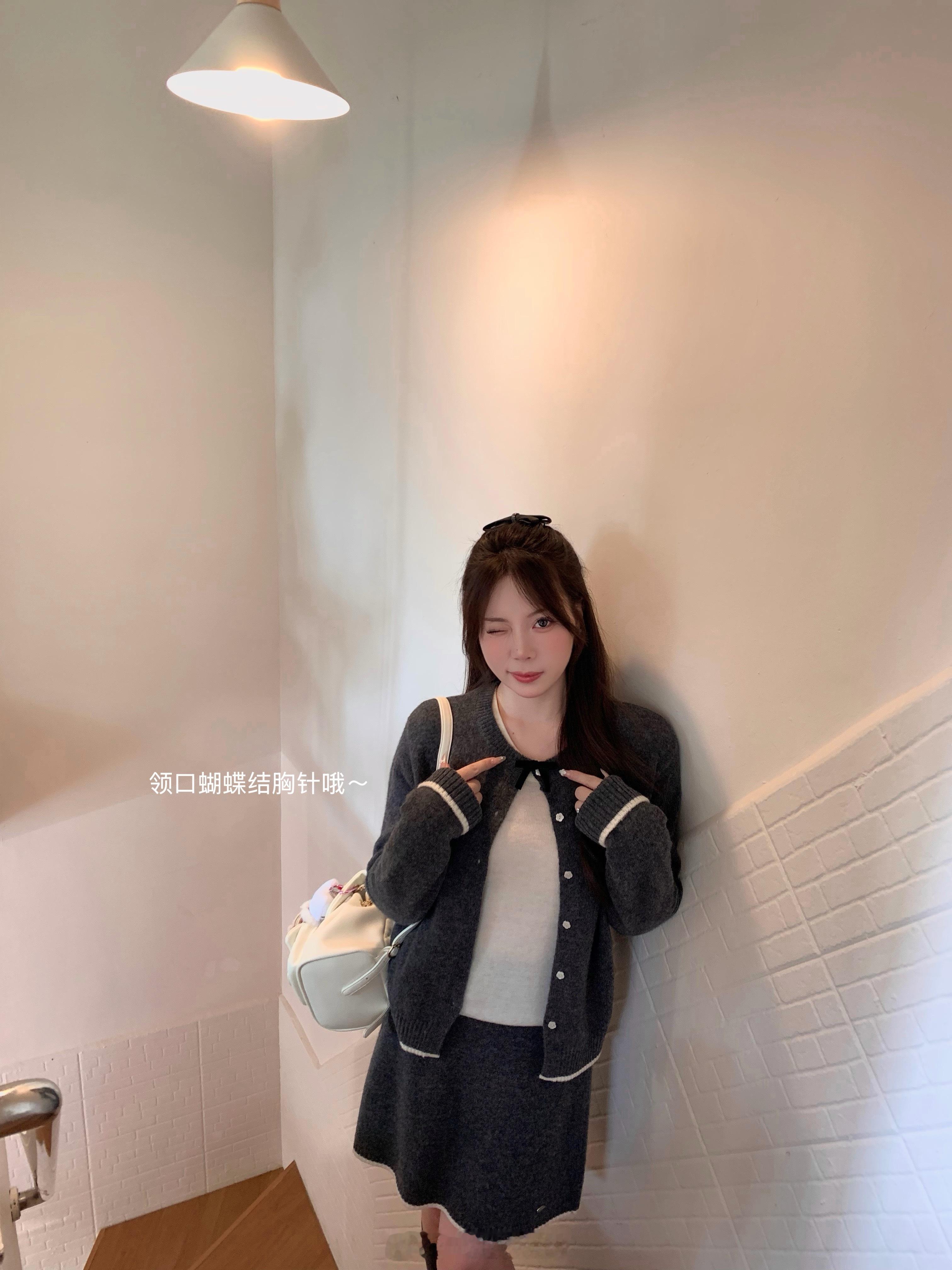 🪄灰色系 深灰色就给人一种学院的感觉,有miumiu感在,版型是正常的开衫组合A字弧度的针织半裙不挑身材也不挑搭配