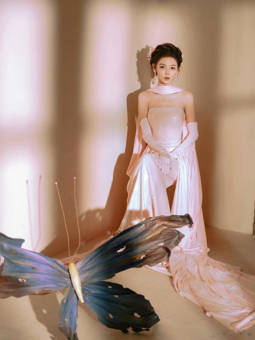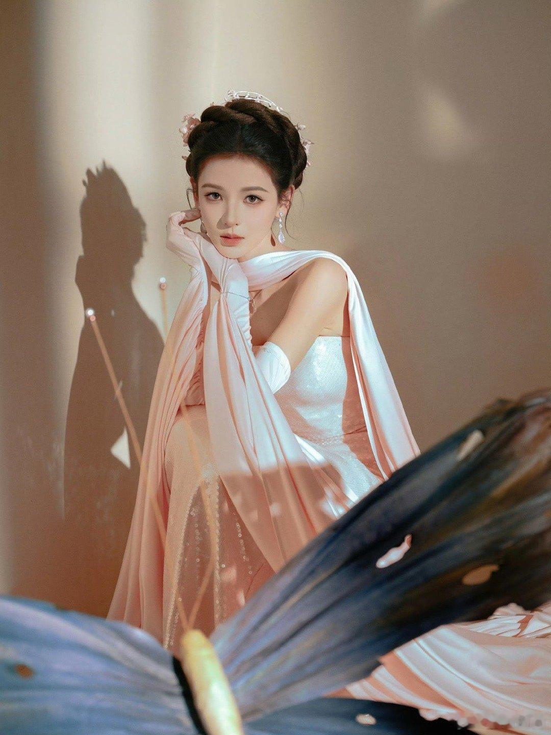 张予曦完全仙女来的 薄纱长裙缀满花朵,如晨露中的花瓣般清新。同色系盘发灵动飘逸,额前碎发增添柔美,张予曦这组造型仙气十足,美得让人移不开眼。