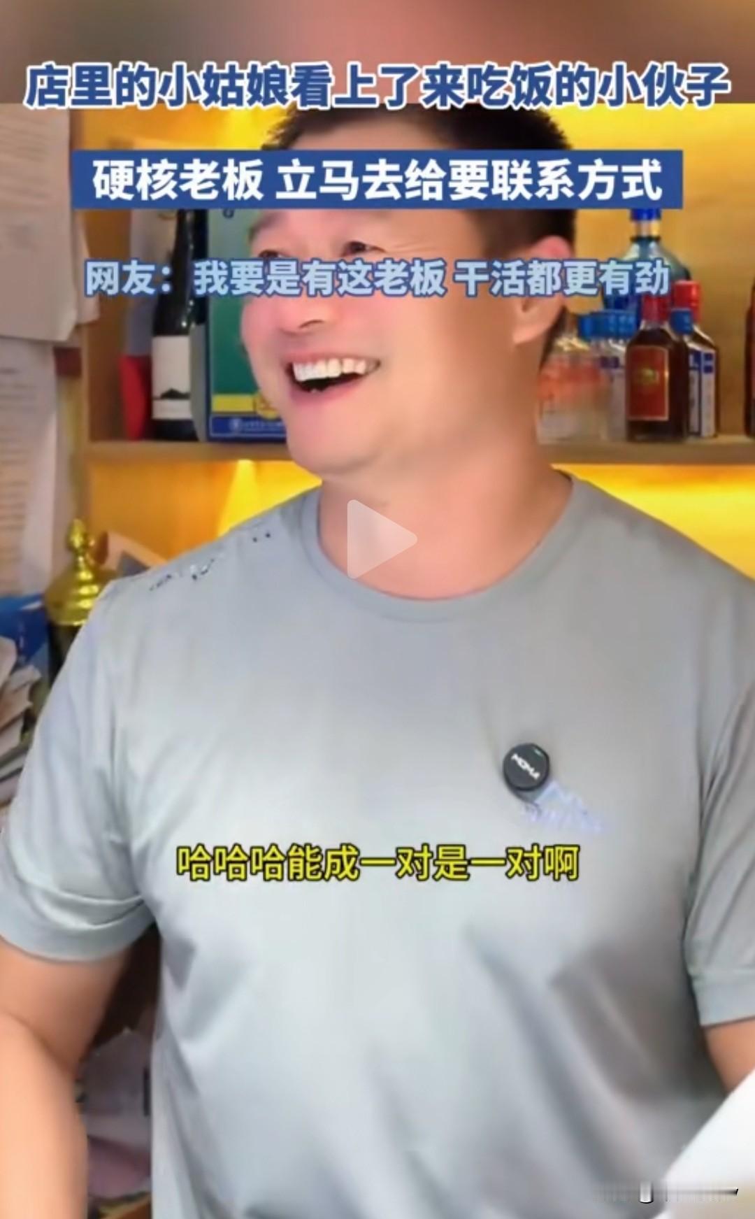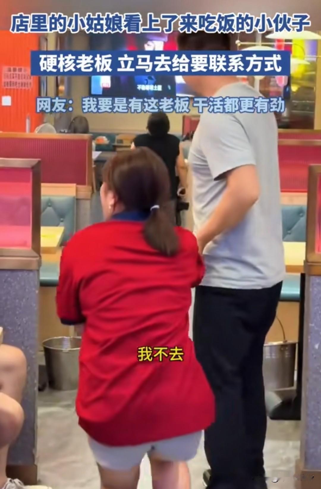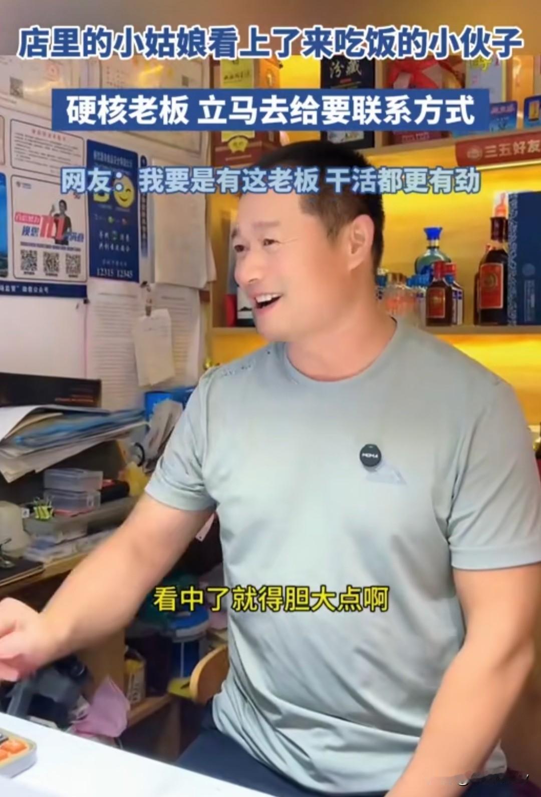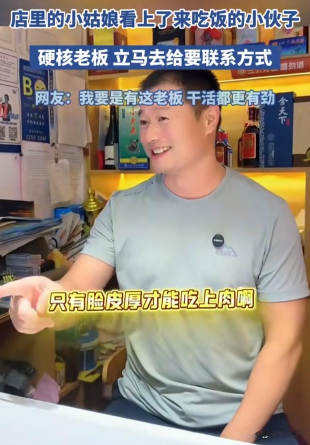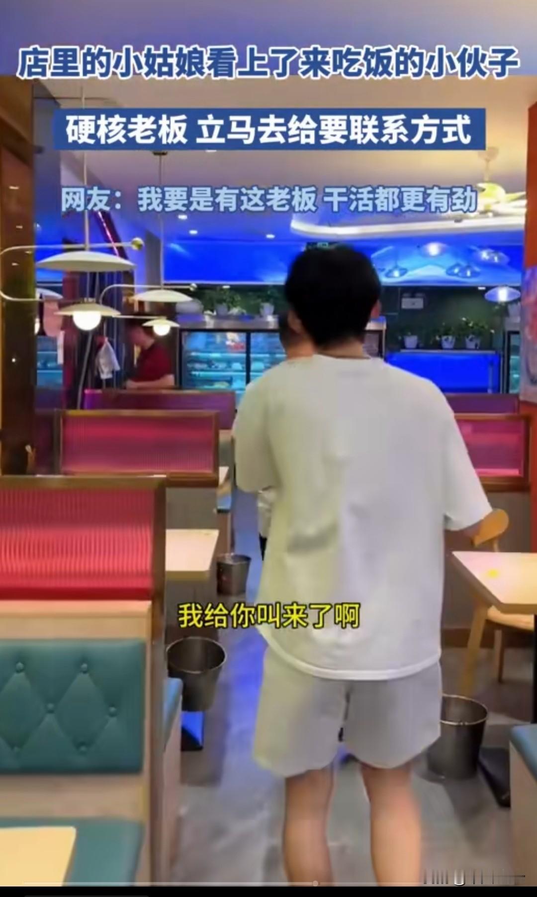 “只要脸皮厚,就能吃上肉!” 女店员看上来吃饭的帅小伙不敢表白求助老板,老板出马瞬间凑成一对有情人! 近日山东某地一饭店发生一起非常有意思的事,几个男子来饭馆吃饭,饭馆女服务员发现顾客中有一个穿白色衣服的小伙穿着干净,长得阳光帅气,顿时心生爱意,小鹿乱撞,虽然内心很激动但出于矜持不敢上前表达交友意愿。 于是姑娘将想法告诉饭馆老板,老板非常高兴愿意牵个线,老板问,你看上哪个了?姑娘说,里面那个穿白色衣服的。 老板拉起姑娘胳膊要带姑娘进包间向小伙表白,姑娘又害羞又难为情的躲闪。老板干脆自己进去把小伙叫出来,老板说,我们店的姑娘看上你了想要你的联系方式,能不能加个微信好友? 小伙大大方方的跟老板出来走到姑娘跟前互相留了联系方式。姑娘又兴奋又开心。 老板也非常开心表示,今天又撮合了一对,对姑娘说,只要脸皮厚,就能吃上肉。 网友表示,这姑娘太可爱了,也很大胆,喜欢就大胆追求才不会错过你喜欢的人。 也有网友说,老板太可爱了,有这么好的老板,干活都有劲! 最后说几句,爱情有时候来的猝不及防,但一定要把握,喜欢一个人要遵从自己的内心,不矫揉造作,在矜持的同时保持大方得体,勇敢的说出内心是想法,不要错过心动的人。