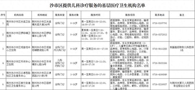 收藏!沙市区提供儿科诊疗服务的基层医疗卫生机构名单发布